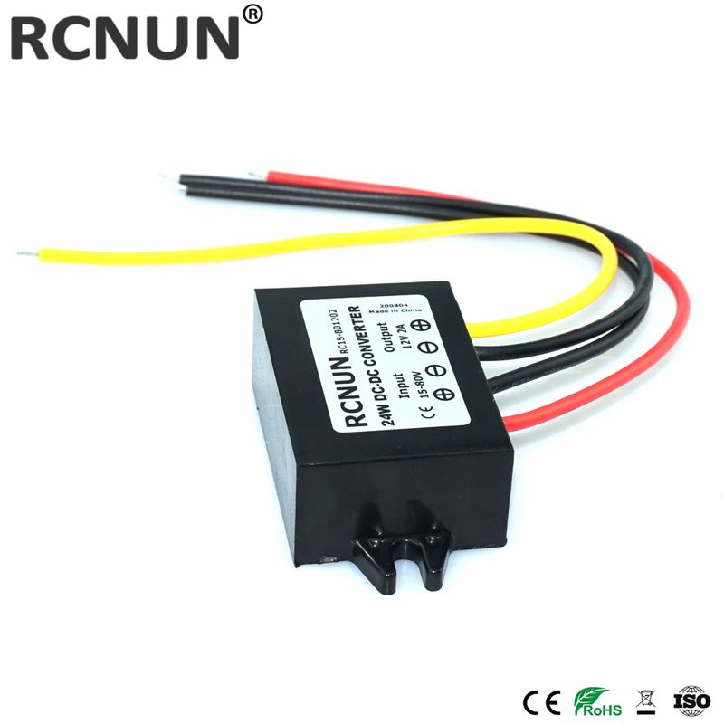 RCNUN 24V 36V 48V 60V to 12V 1A 2A 3A 5A Step-down DC DC Converter 60V-12V Voltage Regulator Buck Car Truck Boat Power Supply