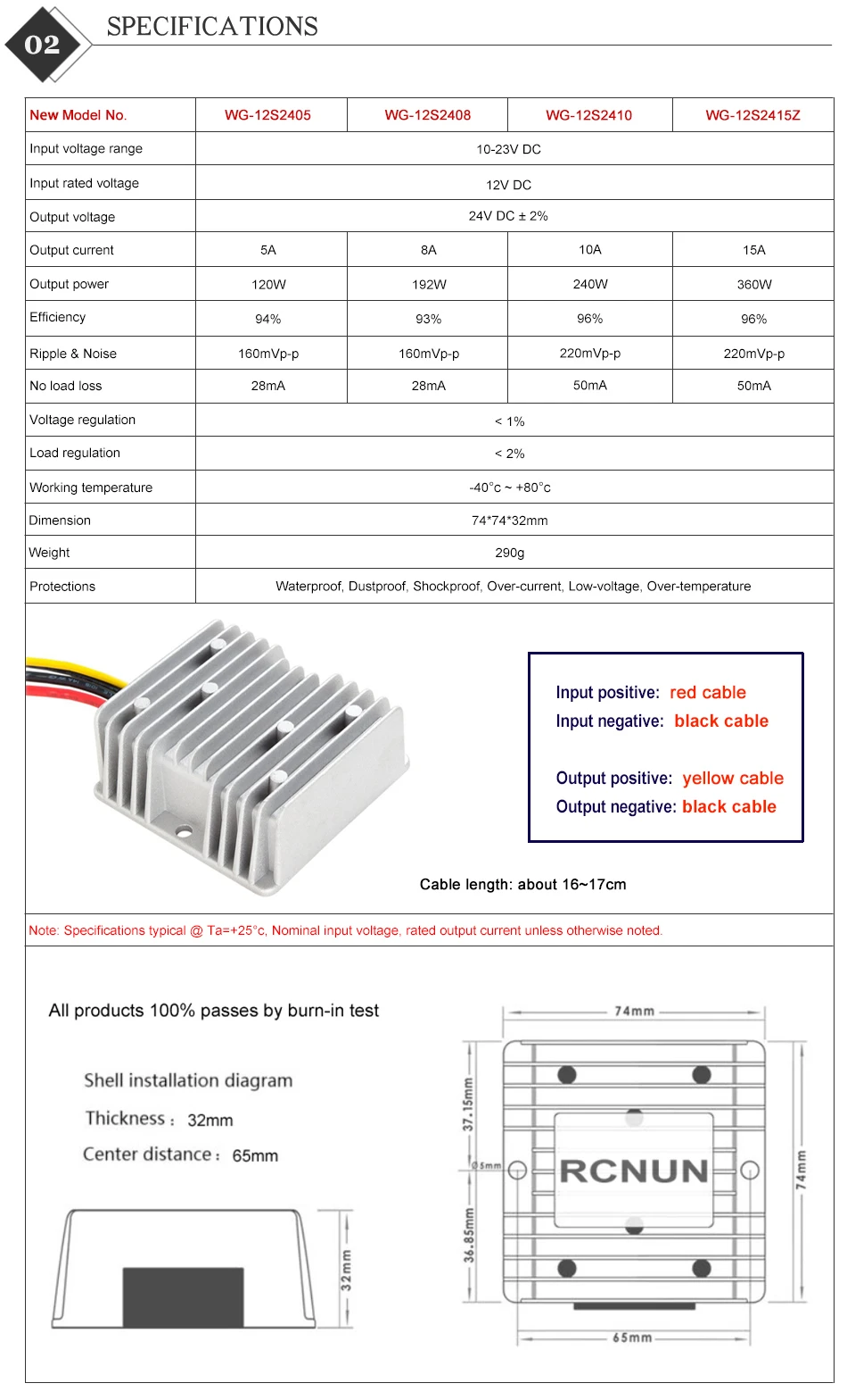 RCNUN Booster 12V to 24V 5A 8A 10A 15A DC-DC Converter Step-up Power Supply 12V-24V Car Voltage Regulator Boost Module CE RoHS
