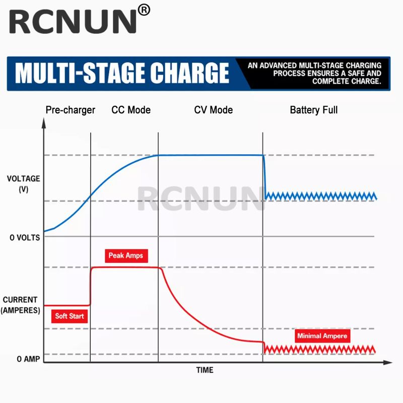 RCNUN DC 9-44V 12V 24V to DC 12.6V 14.6V 16.8V 18.2V 25.2V 29.2V Dual Battery Charger for 12V Lifepo4 Lithium LiMn2O4 Batteries
