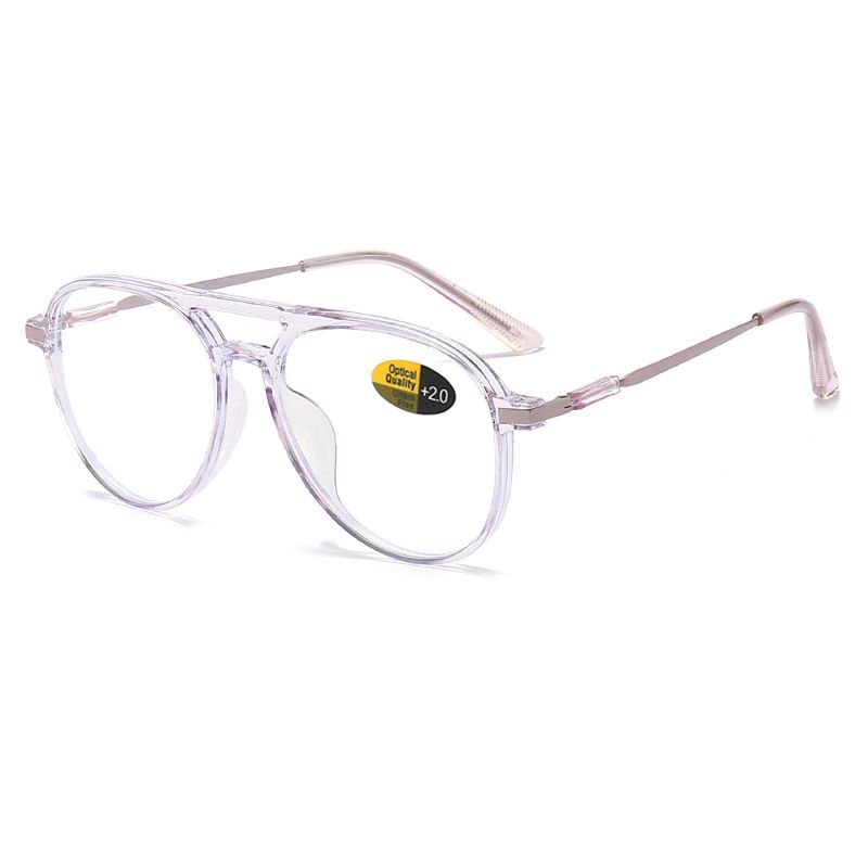 Reading Glasses Men Women Anti Blue Light Eye Glasses Fashion Double Bridge Oversized Round Frame Hyperopia Eyewear +100 To +400