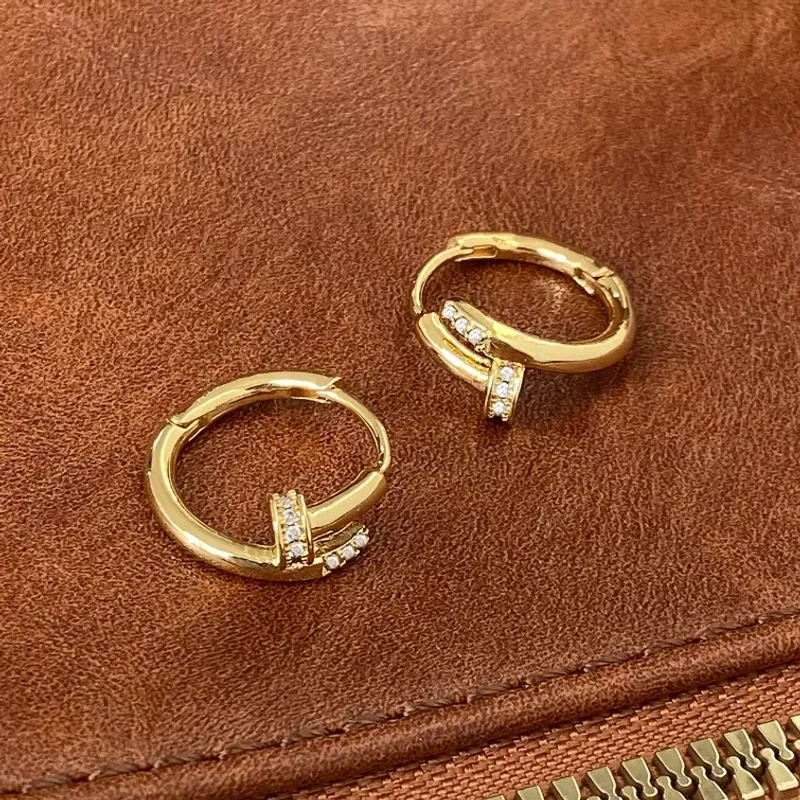 Real 925 Sterling Silver Zircon Nail Round Hoop Earrings for Women Minimalist Trendy Fine Jewelry Shiny Tool Accessories