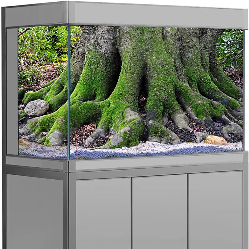 Realistic 3D Green Moss Tree Root Aquarium Background Sticker Forest Stream Landscape Fish Tank Decorative Backdrop