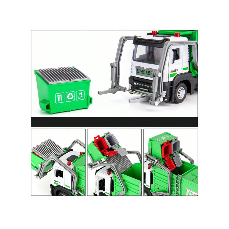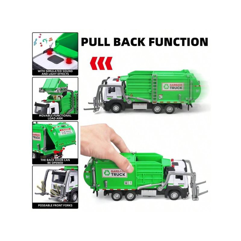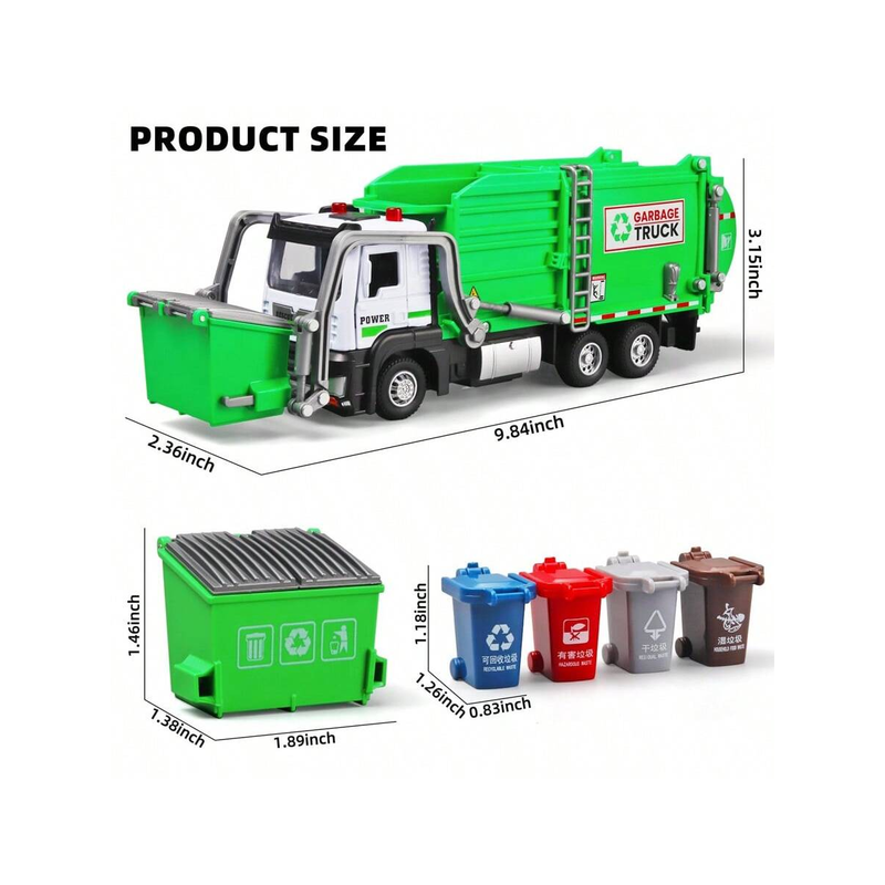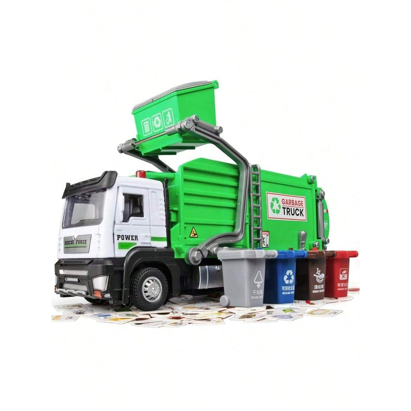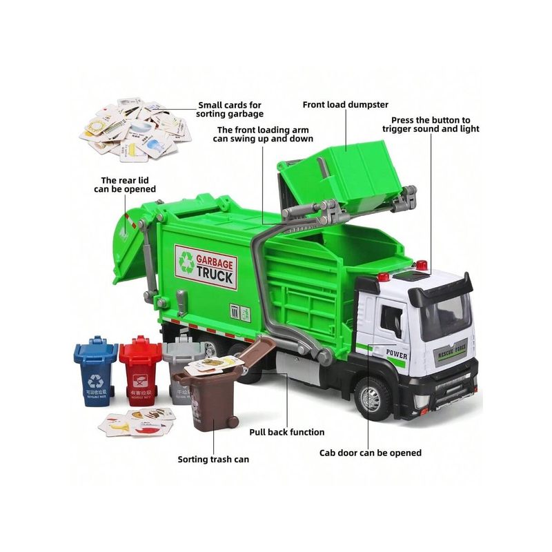Realistic Garbage Truck Toy Set with Trash Can & STEM Learning Cards | 6+ Years Interactive Pull-Back Vehicle for Boys & Girls,