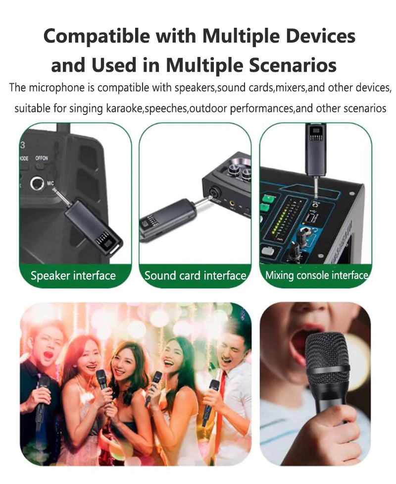 * The microphone is compatible with a variety of devices such as speakers, sound cards, mixers, etc., suitable for singing karaoke, speeches, outdoor performances and other scenes.