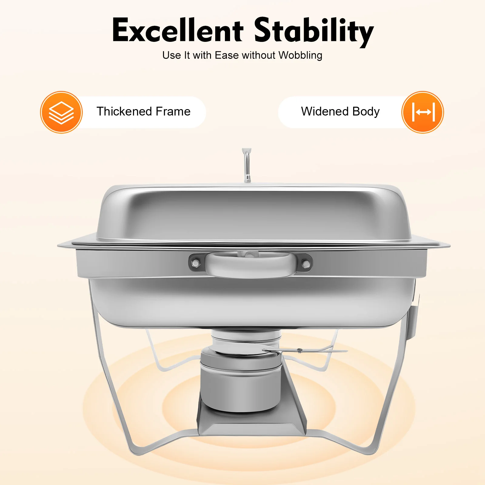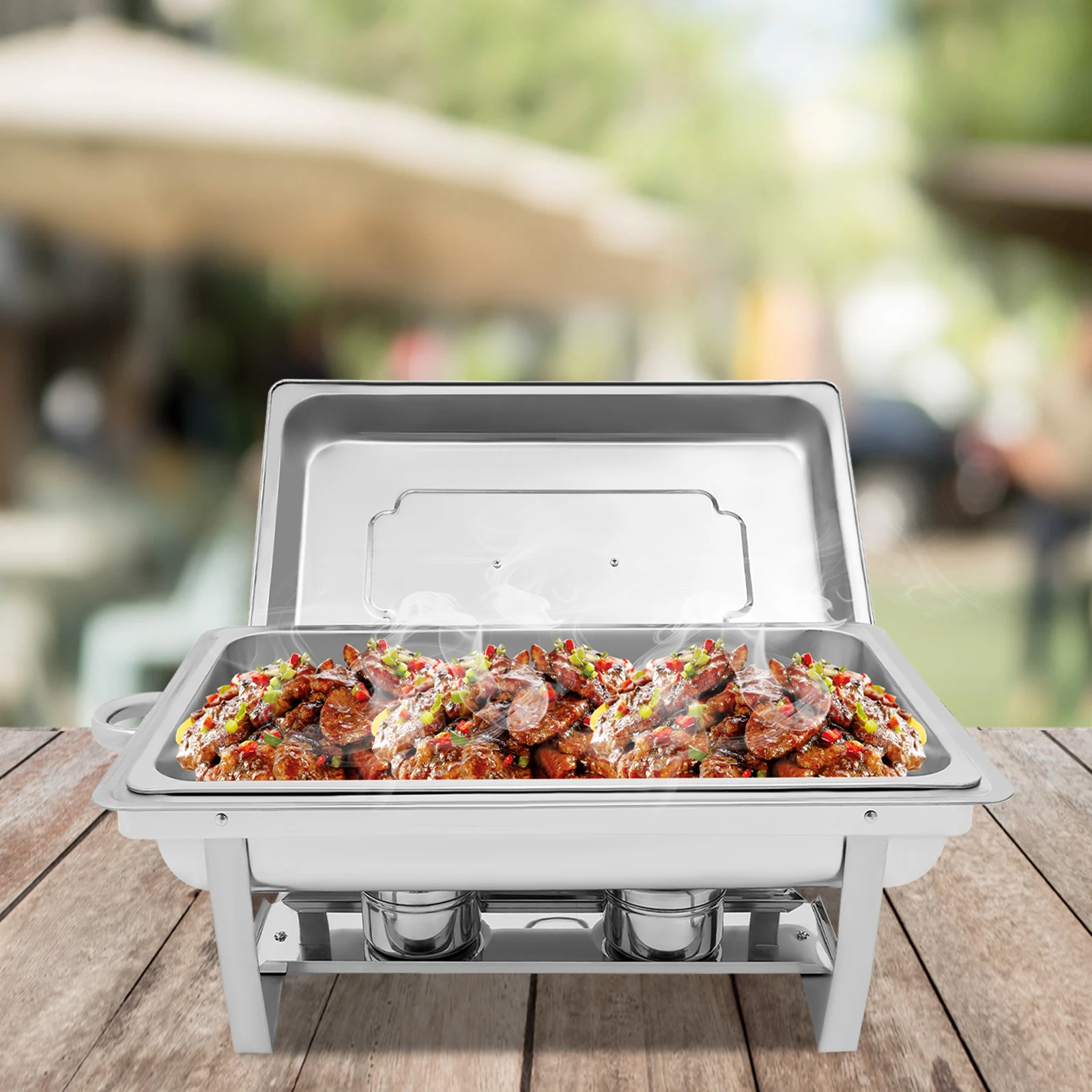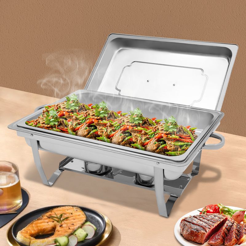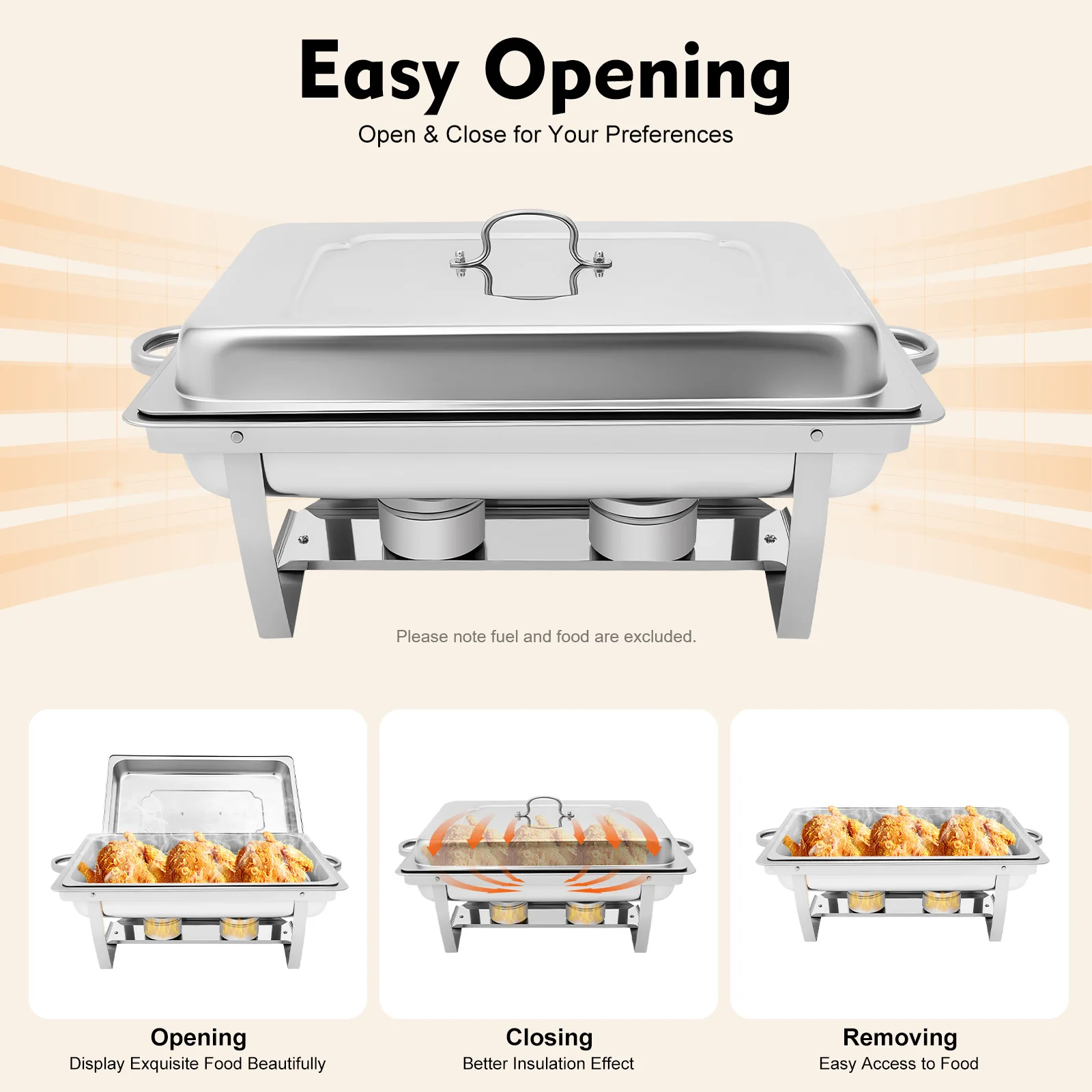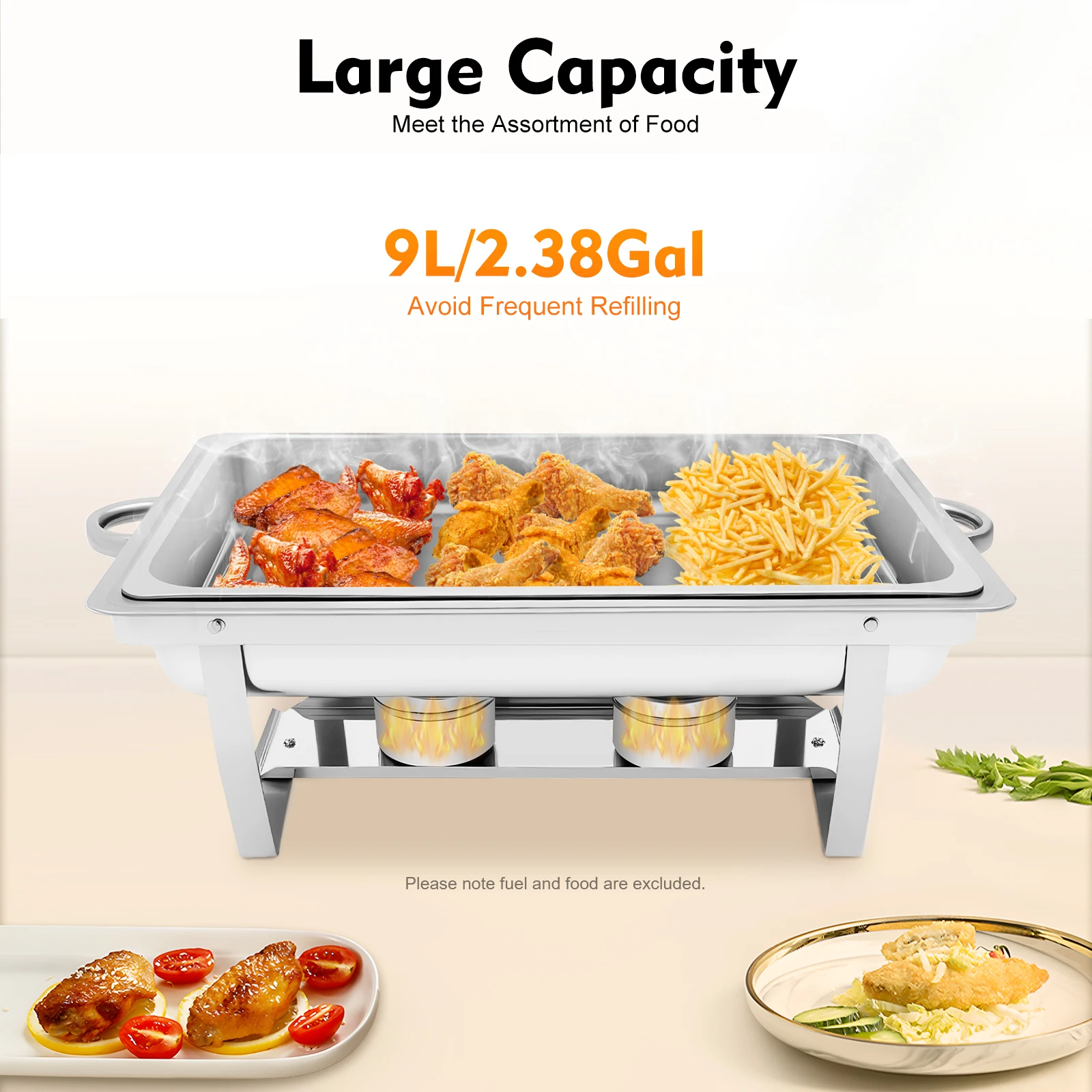 This chafing dish buffet set is for your family gatherings, banquets, or everyday meals with unprecedented elegance and convenience. It is made of high-quality stainless steel, which is non-toxic, healthy, strong, and durable.