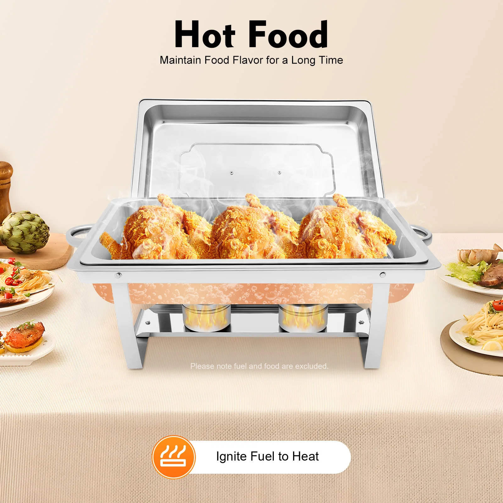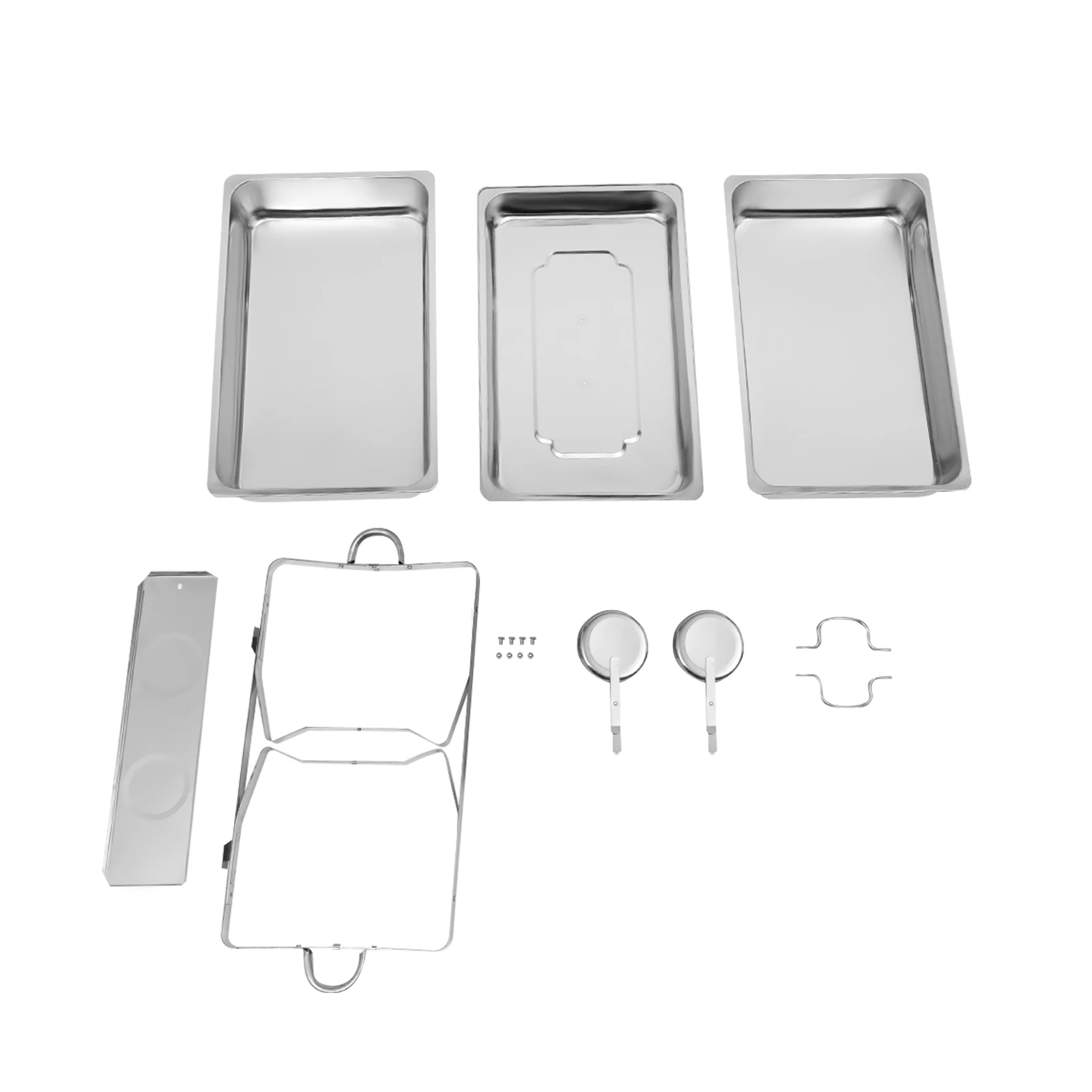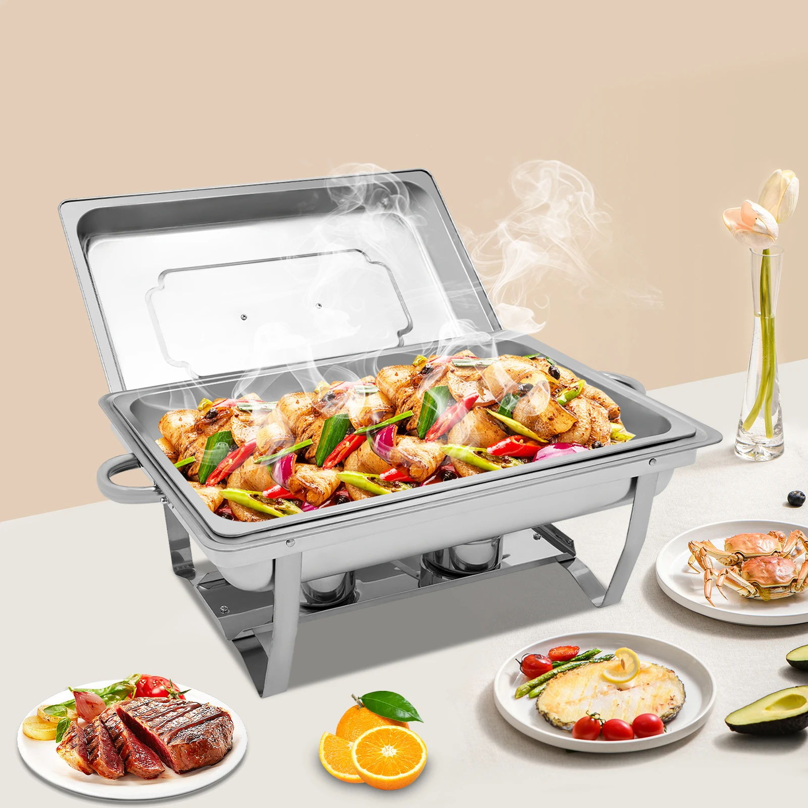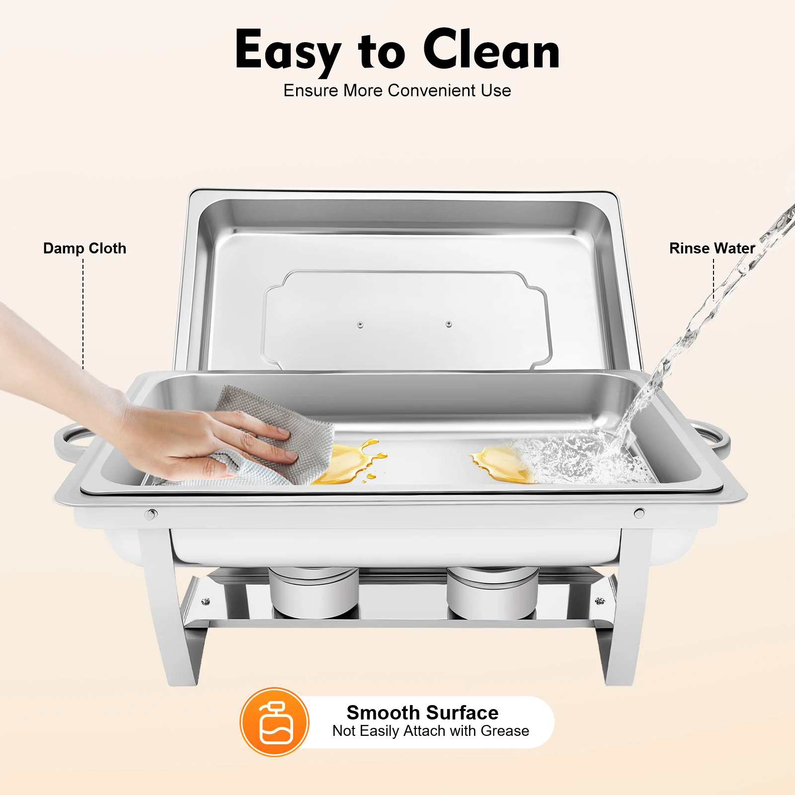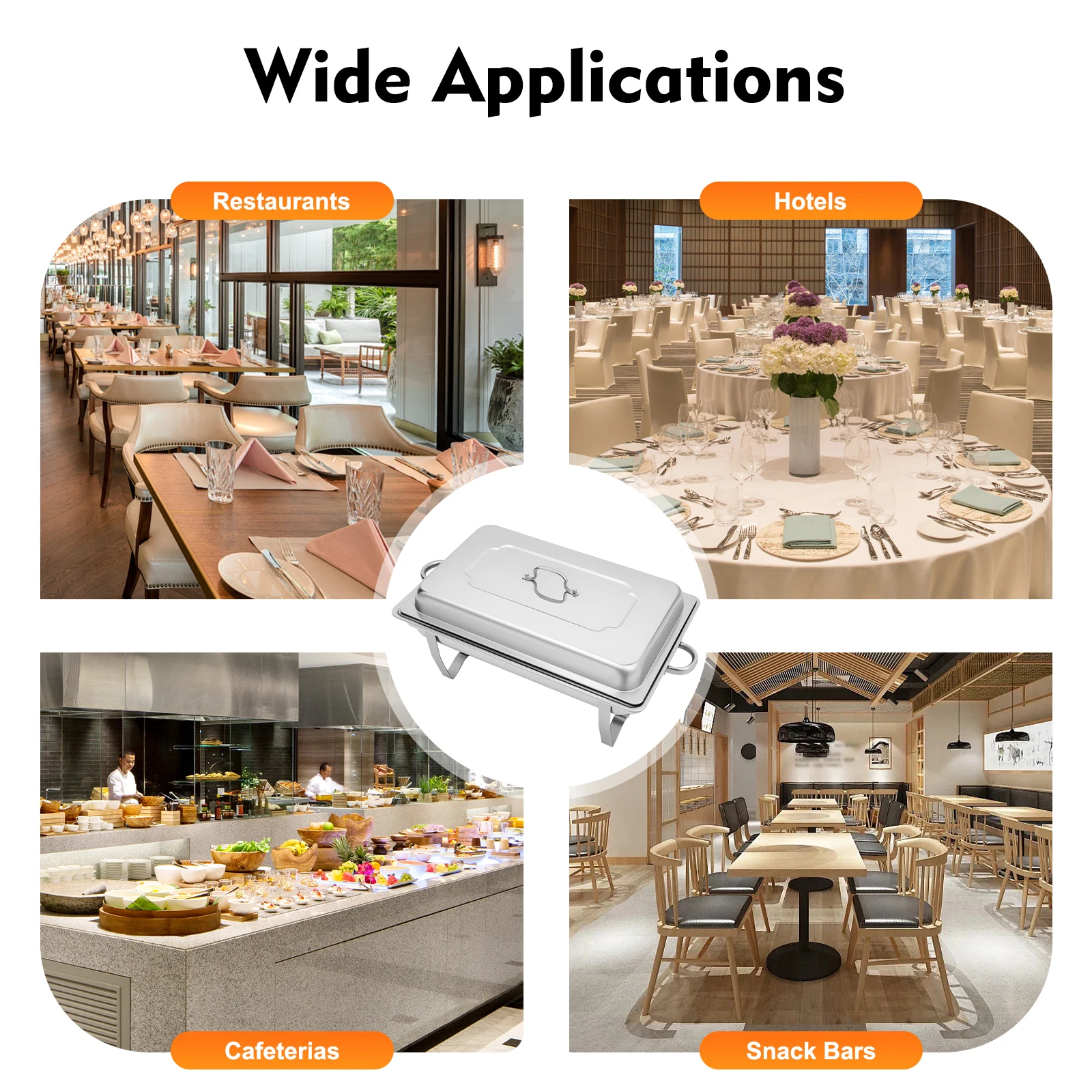 This chafing dish buffet set is for your family gatherings, banquets, or everyday meals with unprecedented elegance and convenience. It is made of high-quality stainless steel, which is non-toxic, healthy, strong, and durable.