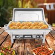 This chafing dish buffet set is for your family gatherings, banquets, or everyday meals with unprecedented elegance and convenience. It is made of high-quality stainless steel, which is non-toxic, healthy, strong, and durable.