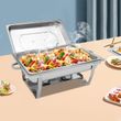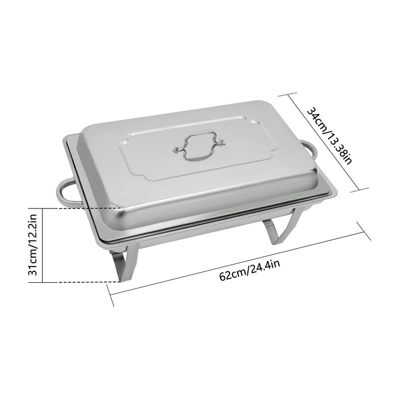 This chafing dish buffet set is for your family gatherings, banquets, or everyday meals with unprecedented elegance and convenience. It is made of high-quality stainless steel, which is non-toxic, healthy, strong, and durable.
