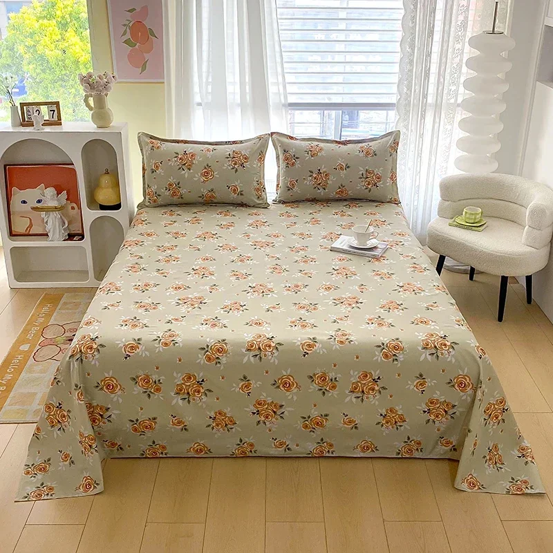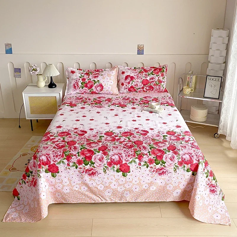 Red Flower Printed Flat Bed Sheets for Double Bed Single/Queen/King Reactive Printed Top Sheets for Beds sabanas cama 150x200