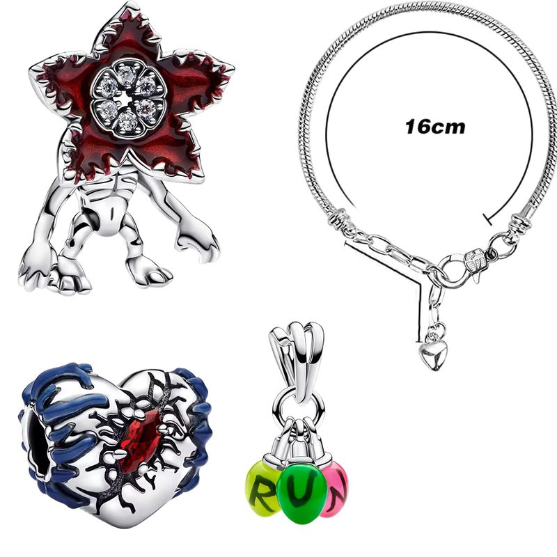 Red Monster Flower Charm Bracelet 925 Silver Adjustable Hypoallergenic 2026 Trendy DIY Jewelry