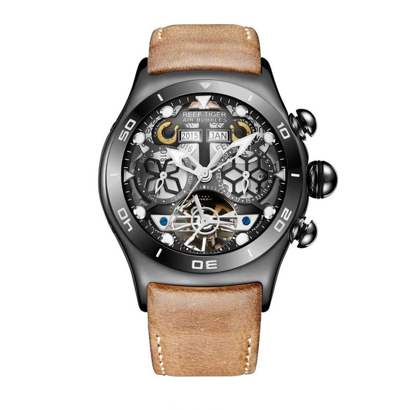 Reef Tiger/RT Luminous Sport Automatic Watches For Men Steel Tourbillon Year Month Calendar Sapphire Waterproof Clock RGA703