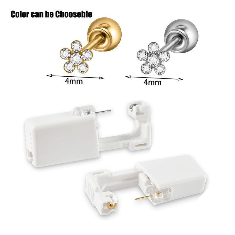 Refflesia 1PC Easy to Use Disposable Sterile Ear Piercer with Flower Gem Safe Ball Buckle Set Piercing Gun Body Piercing Jewelry