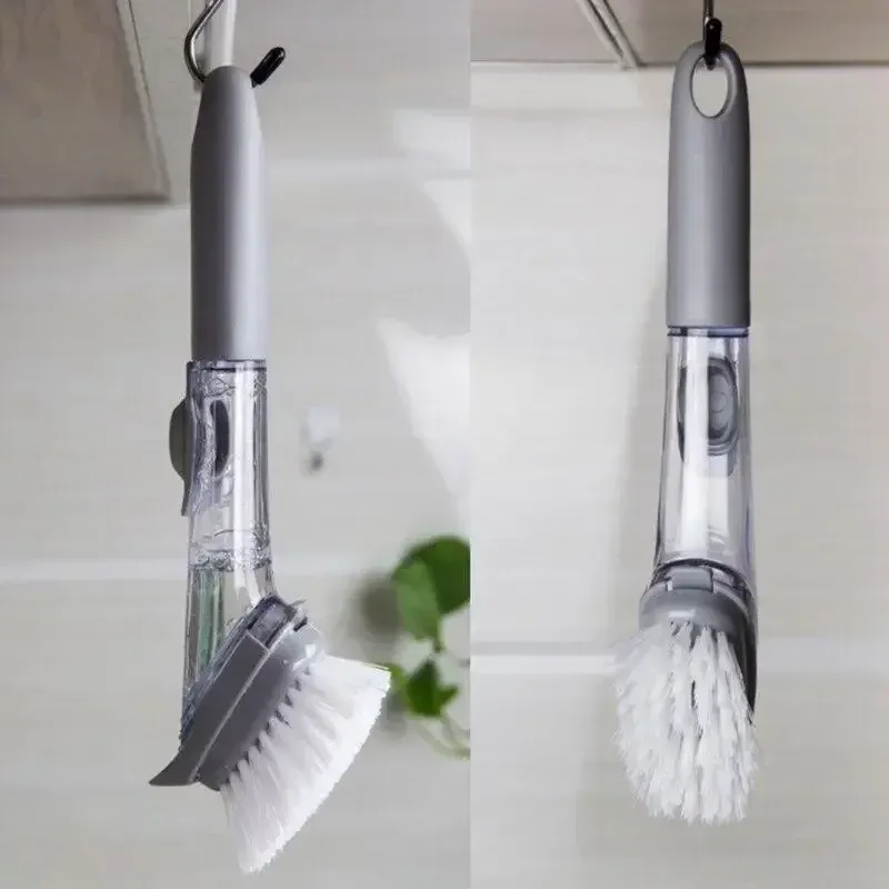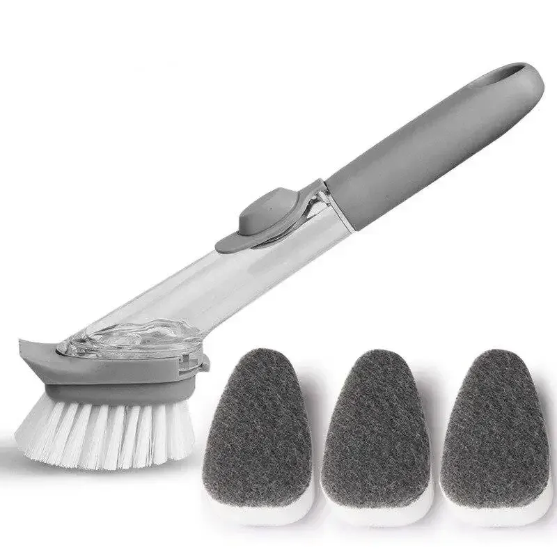 Refillable Liquid Cleaning Brush Kitchen Bowl Scrubber Cleaning Sponge Long Handle Dispenser Cleaner Tool with Dish Soap Washing