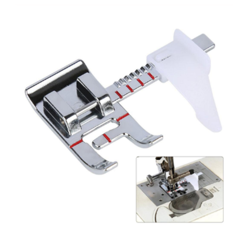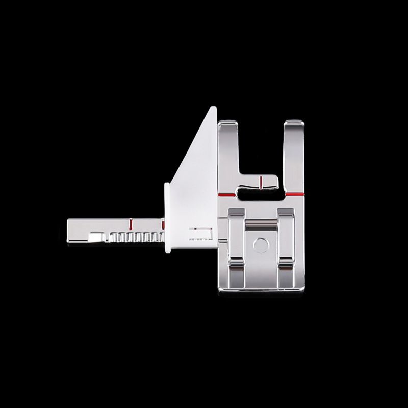 Useful tools: the adjustable sewing machine presser foot, just place the guide along the stitched seam or against any edge to give you a beautiful topstitch; The border guide presser foot can help you easily match the border design with the red line of the foot; The horizontal red line matches the needle drop, and the small red mark indicates the design center aligned with the first row of marks