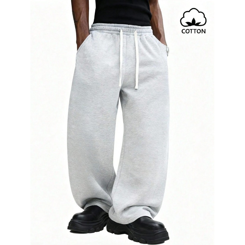 Relaxed Drawstring Sweatpants Heather Joggers Casual Lounge Pants Comfortable Elastic Waist Cotton Blend Bottoms, Men Grey