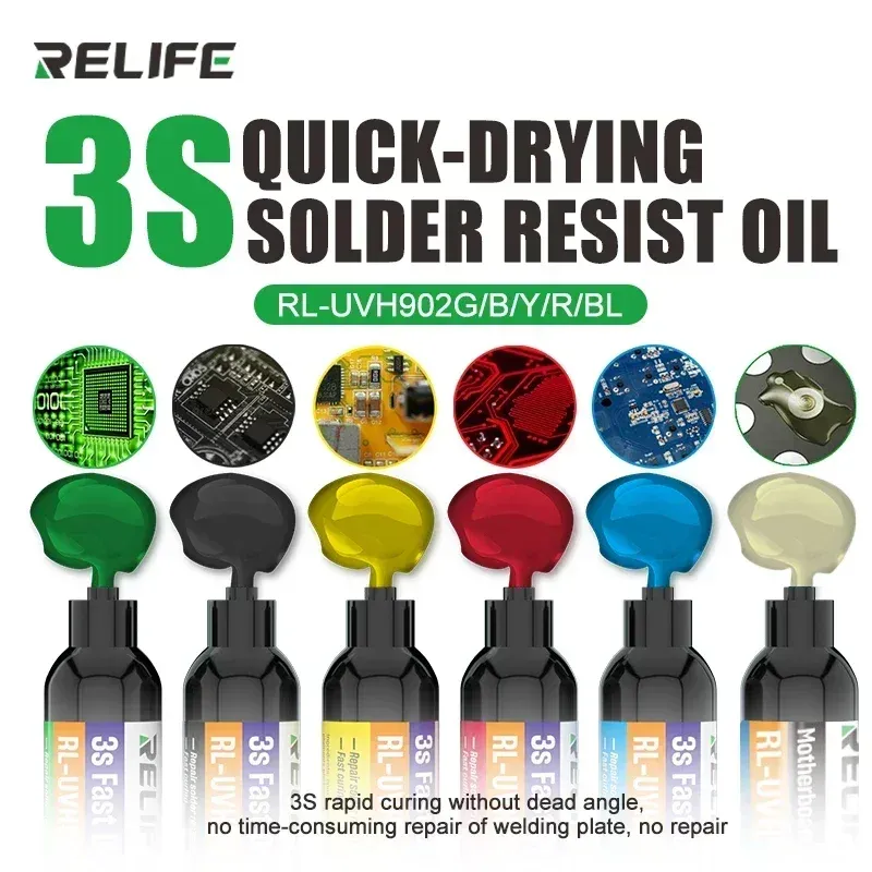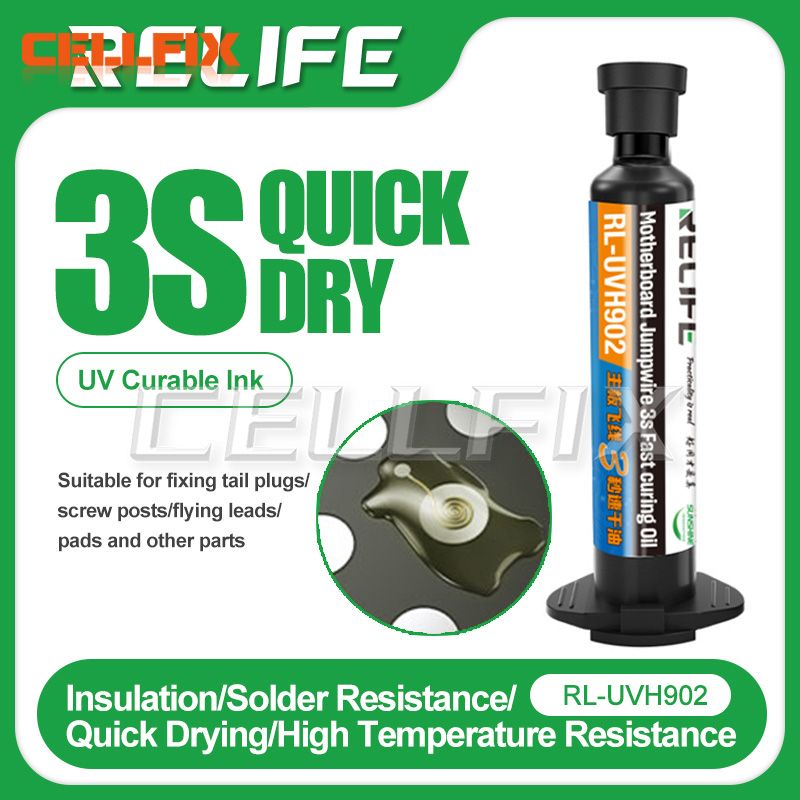 RELIFE RL-UVH902 UV Transparent Curing Solder Mask for Mobile Phone Repair Jumping Wire Quick Dry Curing Welding Paste Flux Oil