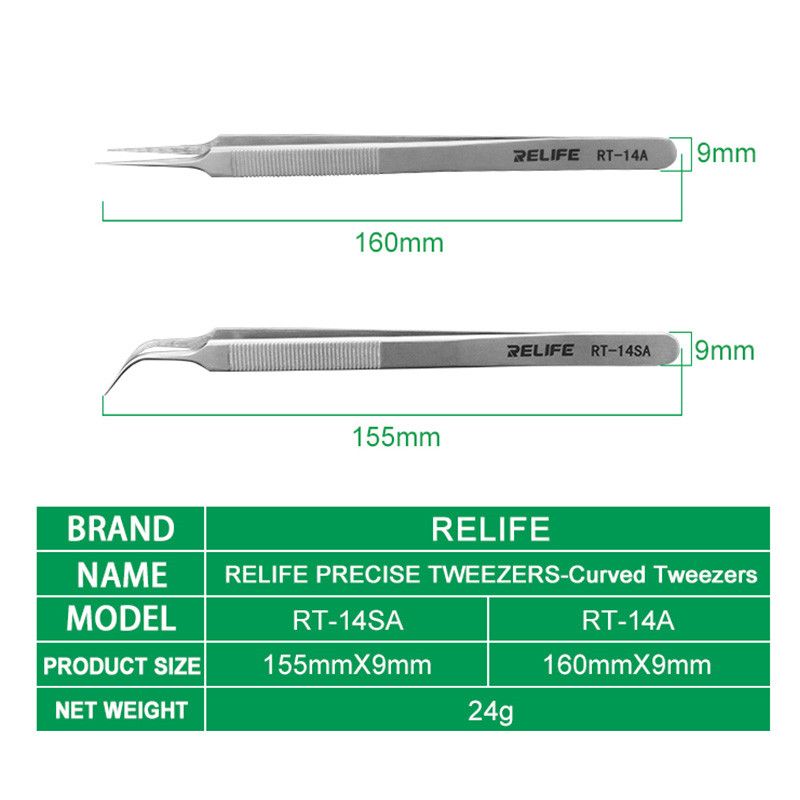 RELIFE RT-14A RT-14SA High Hardness Maintenance Tweezers Anti-Static Straight Curved Phone CPU IC Repair Clips Hand Tool