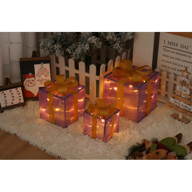 Remote Control Christmas Gift Box Lights Christmas Three-piece Decoration Laser Purple Gift Box