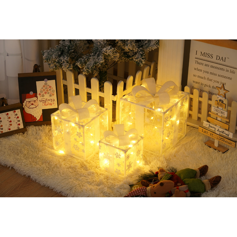 Remote Control Christmas Gift Box Lights Christmas Three-piece Decoration White Mesh Snowflake