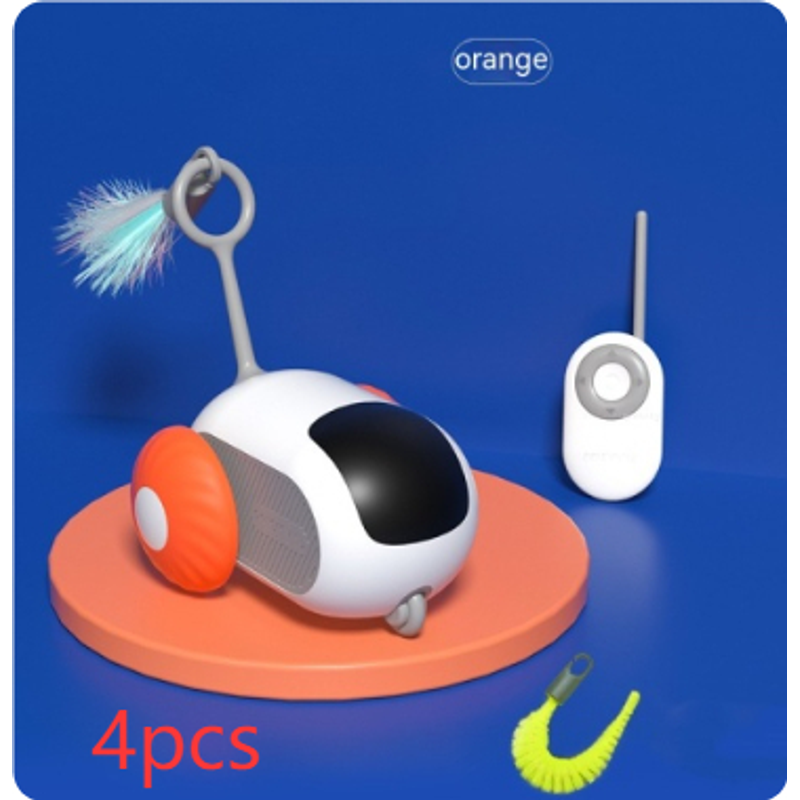Remote Control Interactive Cat Car Toy USB Charging Chasing Automatic Self-moving Remote Smart Control Car Interactive Cat Toy Pet Products Orange Running Car 4pcs USB