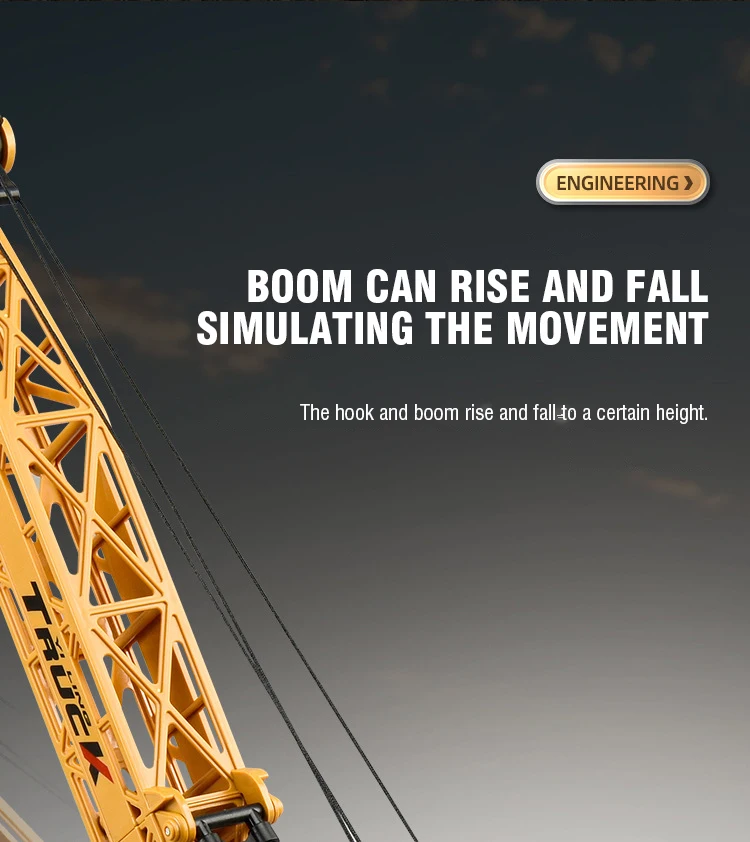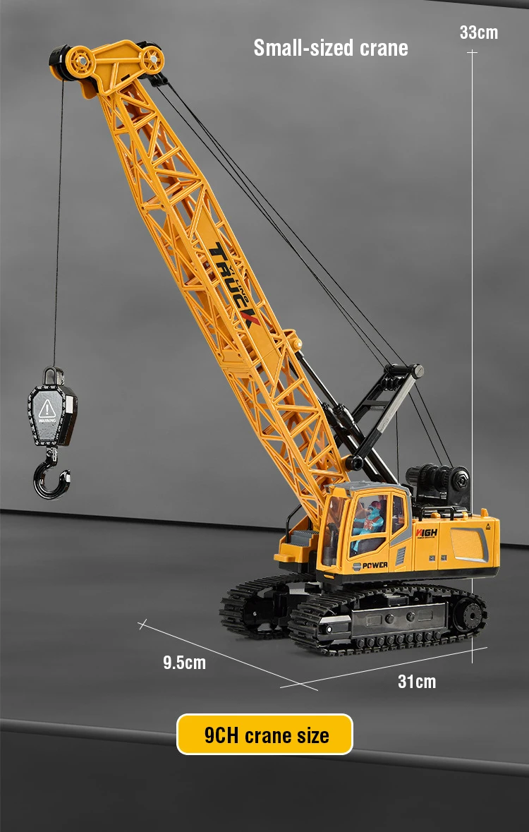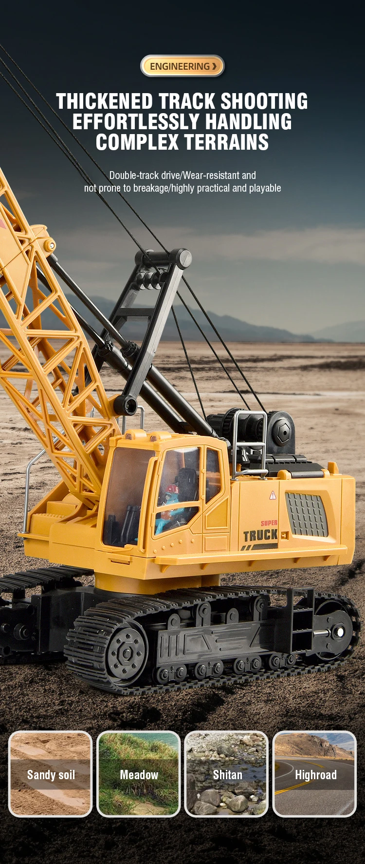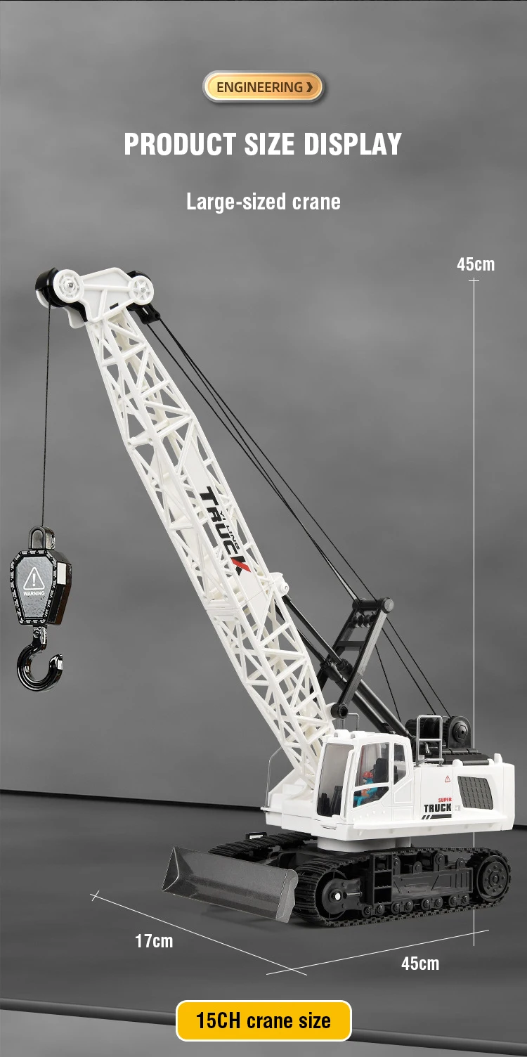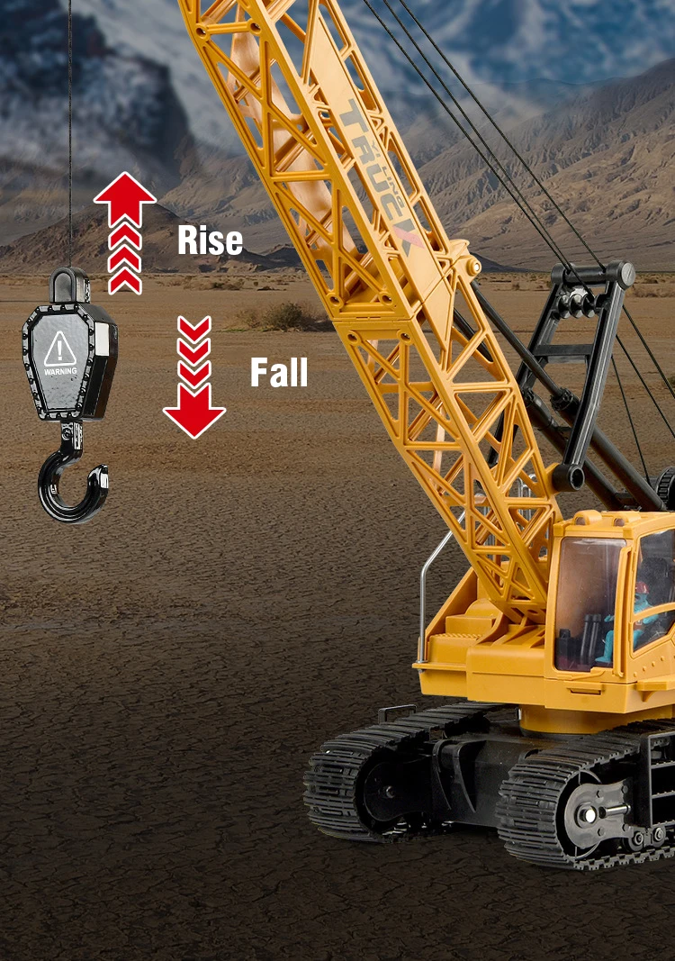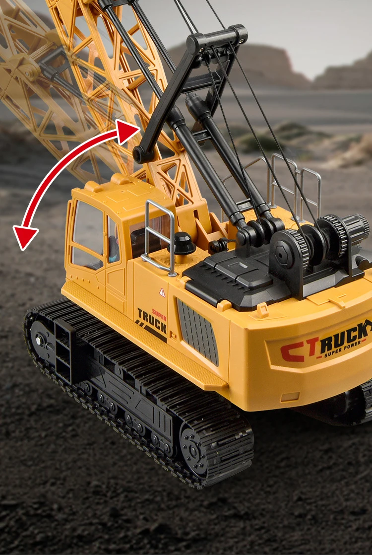- Simulation modeling, colorful, suitable for indoor and outdoor play, more suitable for multi-site control- 2.4G signal is not interfered, remote control distance is long9 channels: front and back, left and right, mining, unloading, one-button demonstration, table to the left and right remote control 680 degrees11 channels: Forward, left and right, hook up and down, shovel pushing, one key demonstration, remote control of the console to the left and right at 680 degrees13 channels: Forward, backward, left turn, right turn, 680 degrees of turntable, lifting hook ascending, descending, sound effect, light, spray, push shovel, one button demonstration15channels:Hand shovel,front and back, left and right, digging, unloading, moving up and down, spray opening and closing, one-button demonstration, table to the left and right remote control 680 degrees