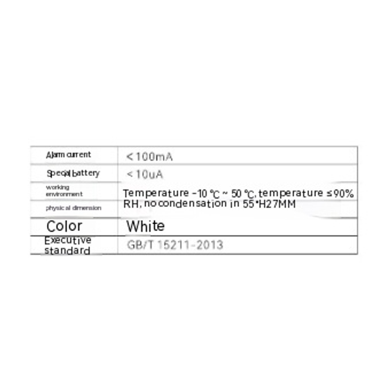 Working current: ≤ 10uA monitoring, ≤ 100mA alarm