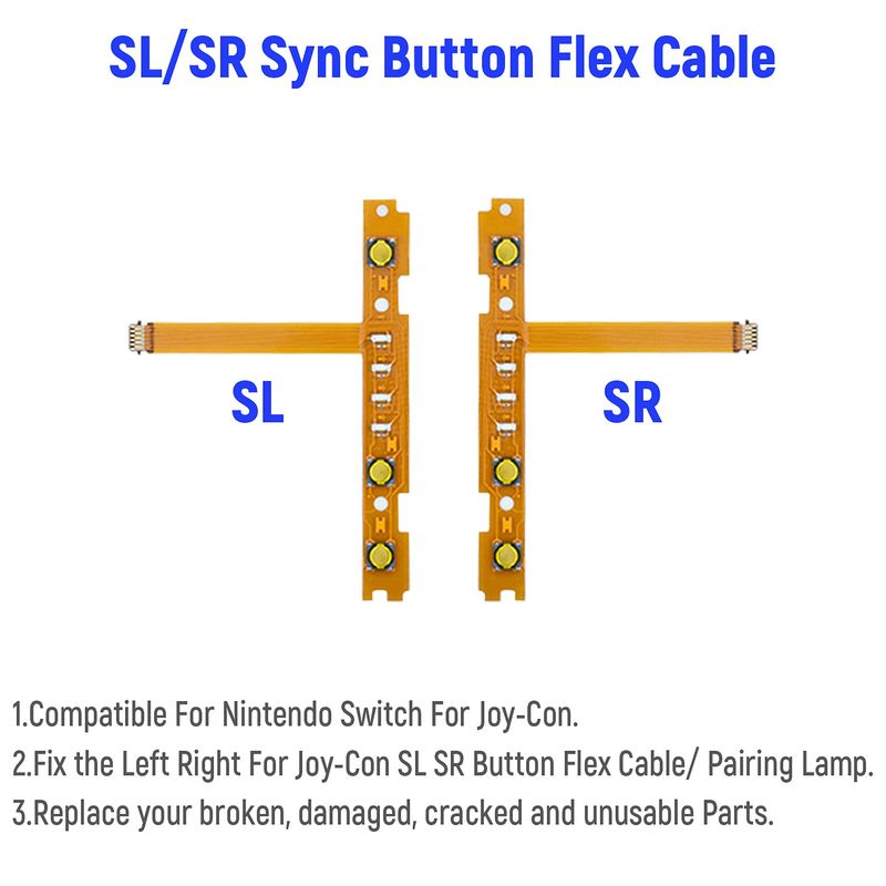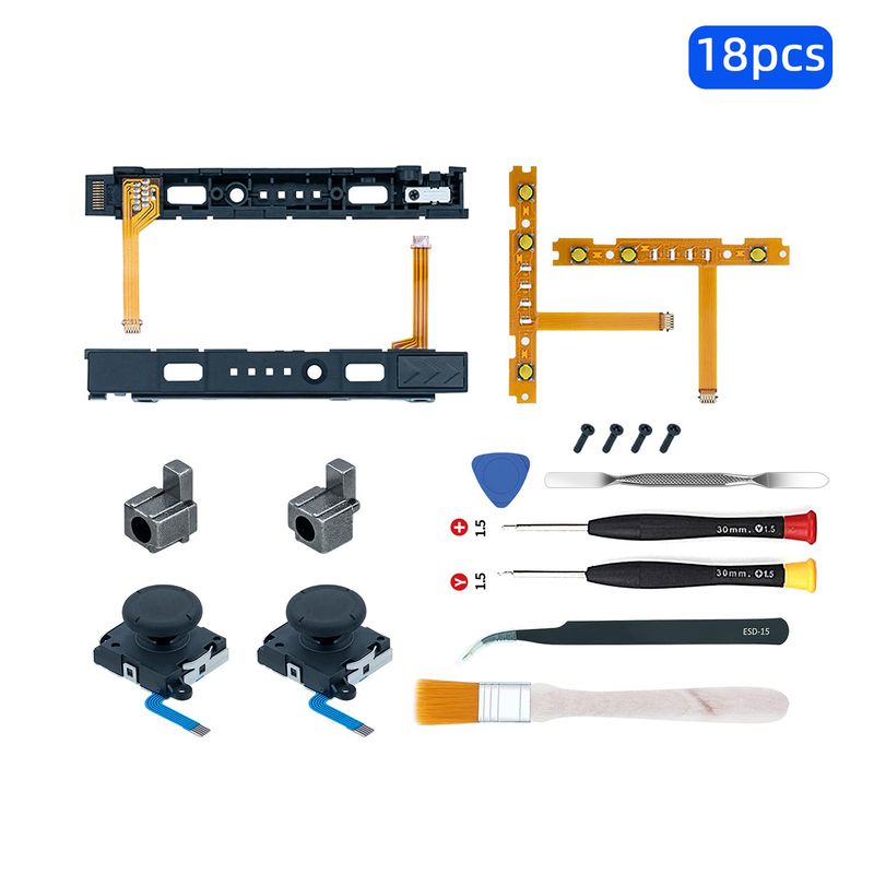 ●Fit for N-Switch Joy-con: High quality replacement repair parts for Joy-Con controllers. Includes 2 analog sticks, L/R charging port slider set, L/R slicker buckle lock set, SR/SL sync button flex cables and screws. Ideal for replacing damaged or tired parts.