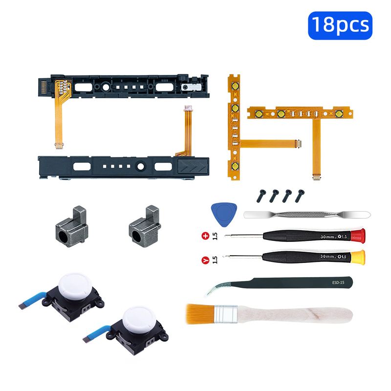 ●Fit for N-Switch Joy-con: High quality replacement repair parts for Joy-Con controllers. Includes 2 analog sticks, L/R charging port slider set, L/R slicker buckle lock set, SR/SL sync button flex cables and screws. Ideal for replacing damaged or tired parts.