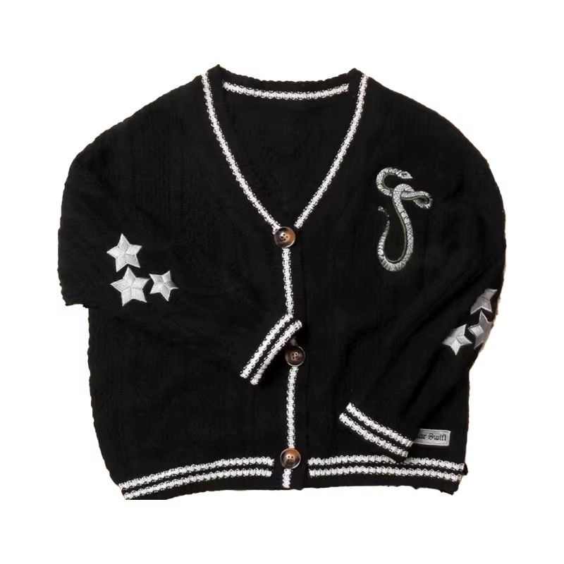 Reputation Cardigan with Snake Star Cardigan Rep Taylor Embroidery V-Neck Button Up Knitted Sweater in Black Fall Winter