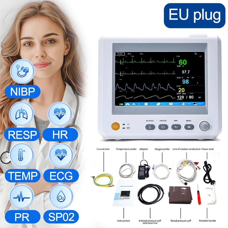 Resoxy Medical Vital Signs Monitor NIBP RESP TEMP PR HR ECG SPO2 8in Multi-Parameter Monitor For Patient Vital Signs Monitoring
