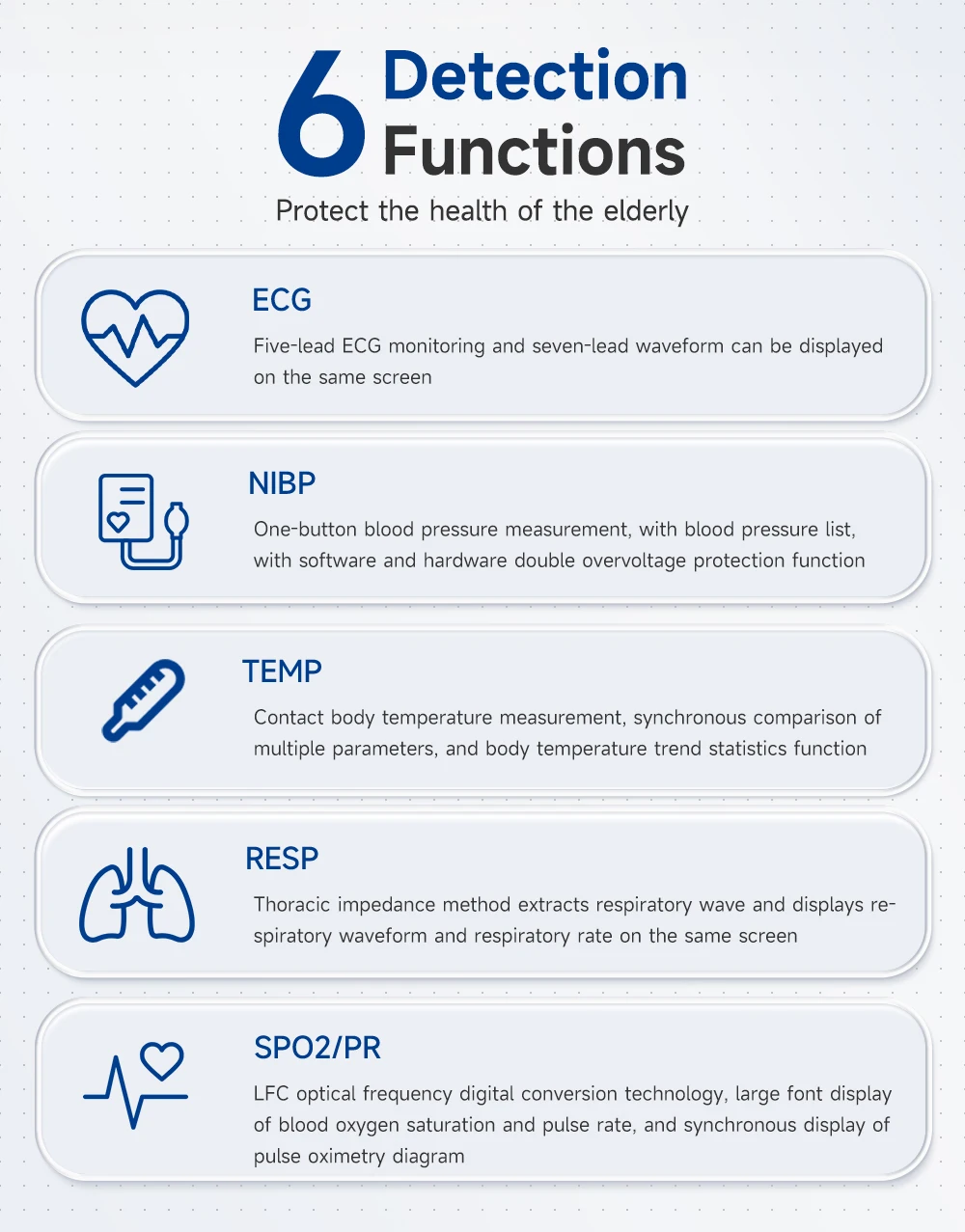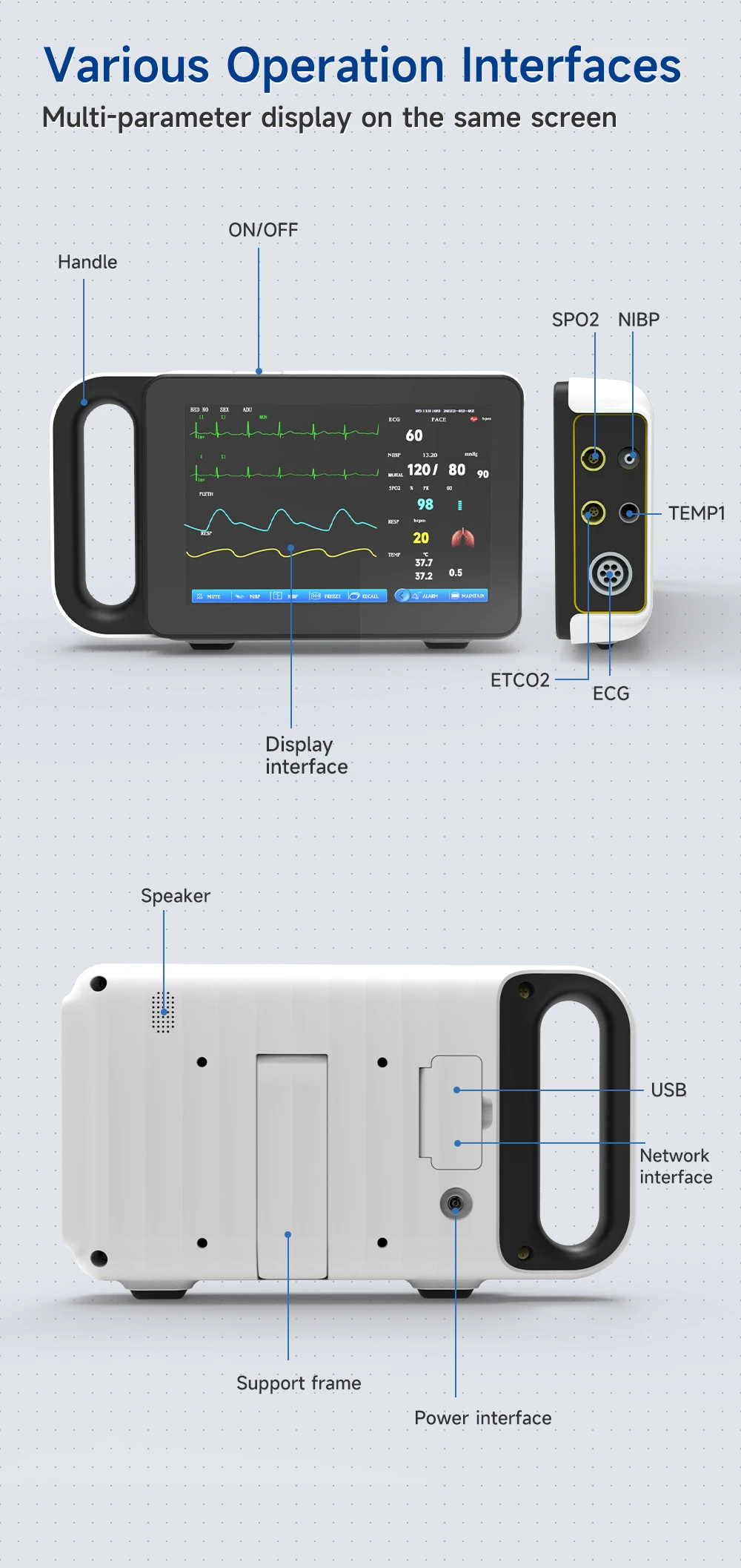 Standard parameter :ECG/NIBP/PR/RESP/TEMP/SPO2