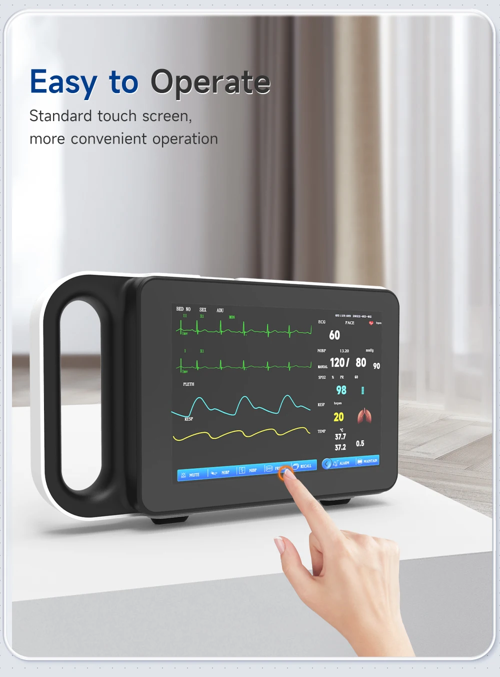 Resoxy Patient Monitor ICU Ambulance 6 Parameter Vital Signs Monitor 7 Inch Display ECG NIBP RESP SPO2 PR TEMP Human USE