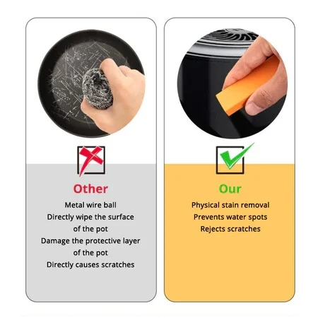 For wall stains, dry wiping has a better effect, neither hurting the wall nor scratching;  wet wiping does not require a detergent, just use it with water. Square corner design, the gap can also be cleaned.