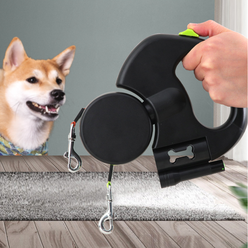 One-to-two automatic telescopic traction rope, easy to walk two dogs.