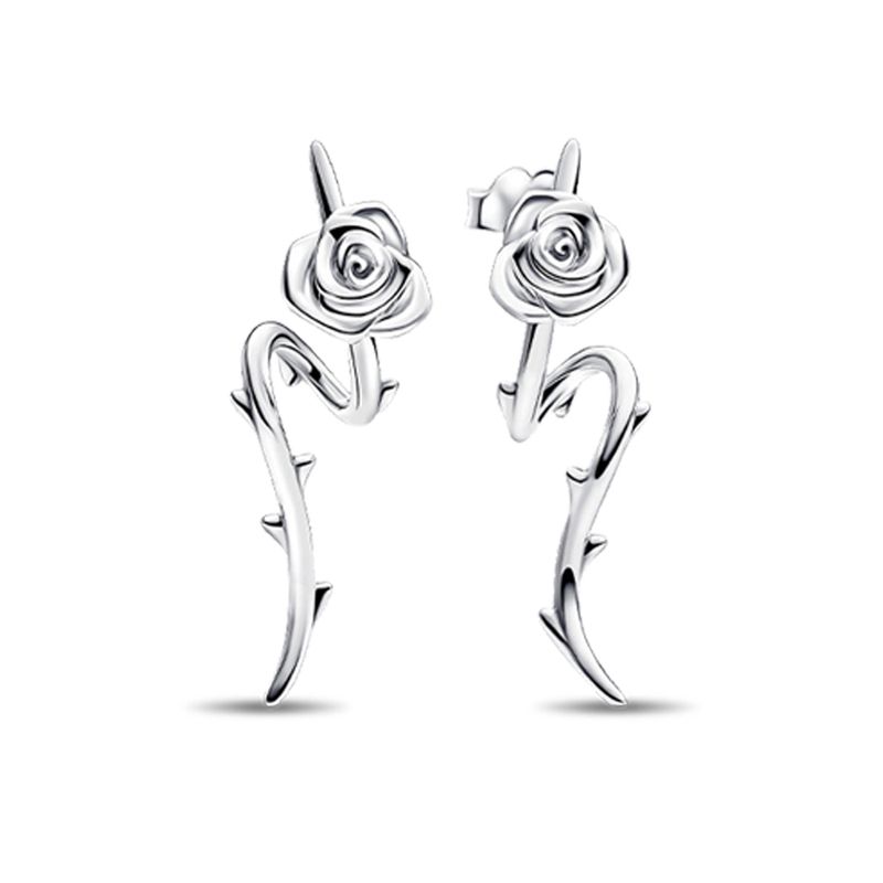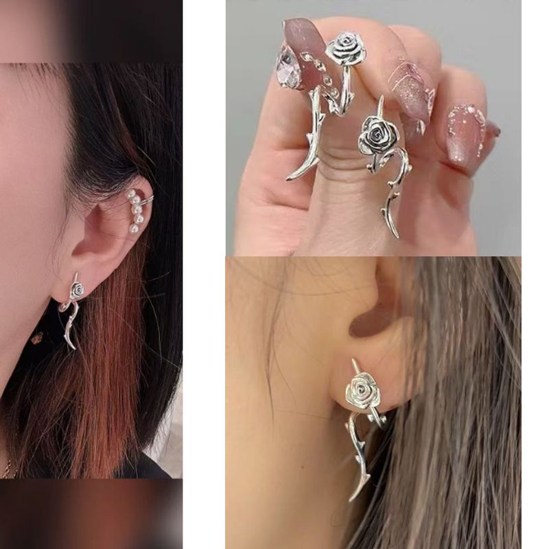 Retro 925 Sterling Silver Flying Dragon&Thorn Rose&Single Needle&Magic Flower Earnail Cool Jewelry For Couples