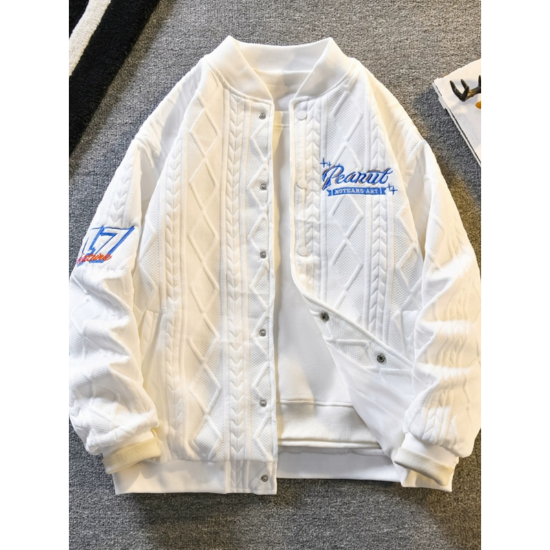Retro American Baseball Jacket for Men Loose Casual Embroidered Jacket Spring Autumn Youth Outerwear Short Sleeve Long Sleeve