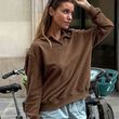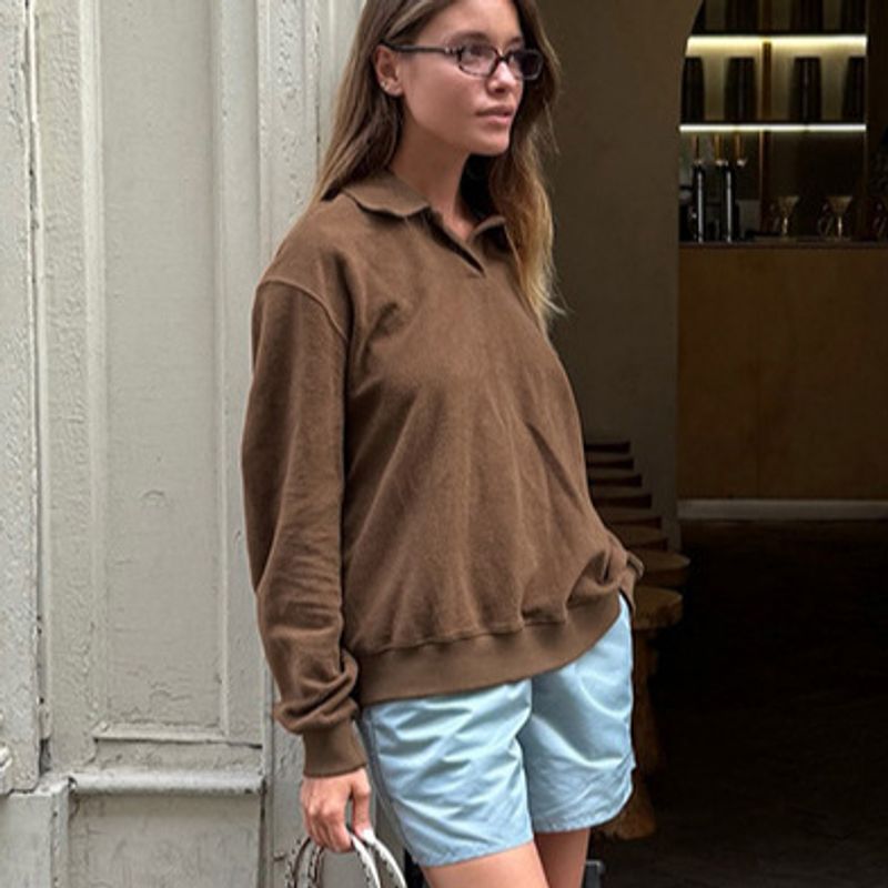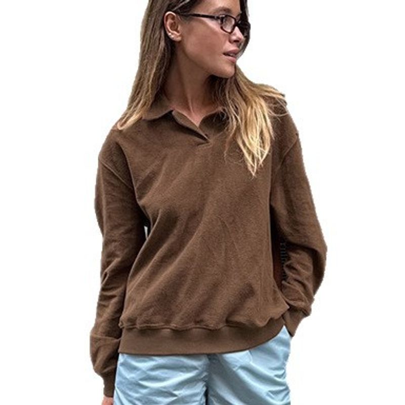Retro Brown Casual Long-sleeved Lapel Polo Shirt Dark Brown S