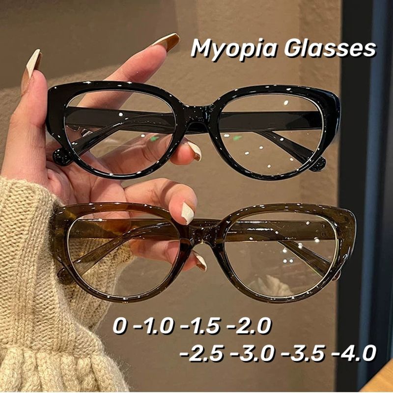 Retro Cat Eye Korean Myopia Glasses Fashionable Anti Blue Light Near Sight Glasses Ultra Light Unisex Transparent Eyewear