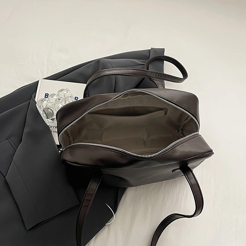 .retro college-style single-shoulder bag, versatile large-capacity commuter bag, fashionable boston briefcase
