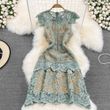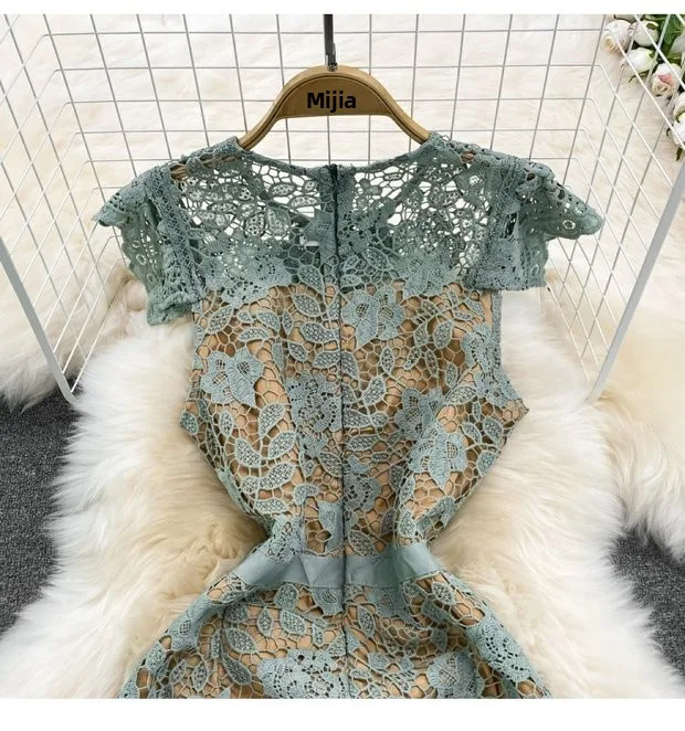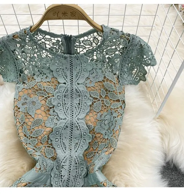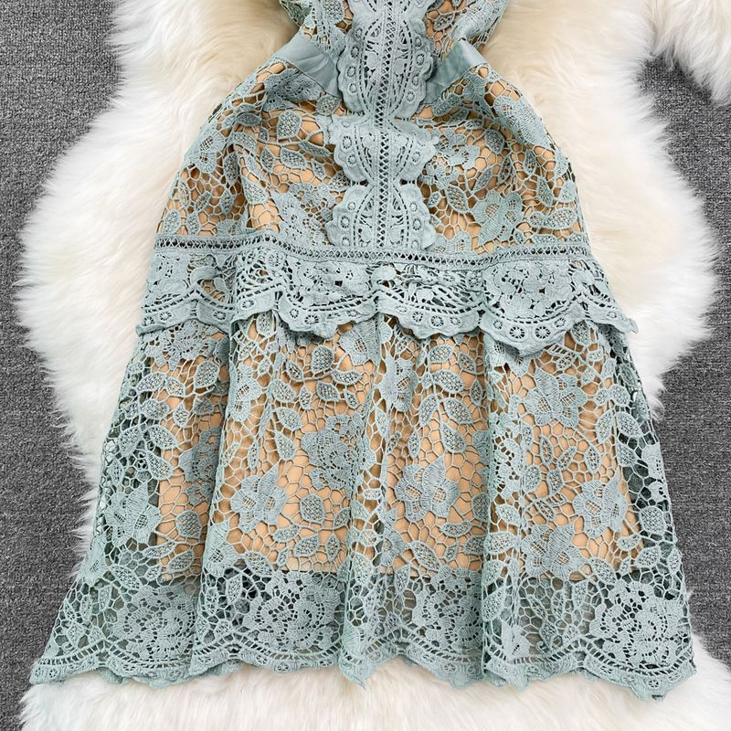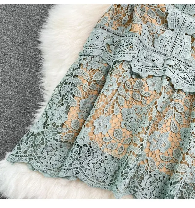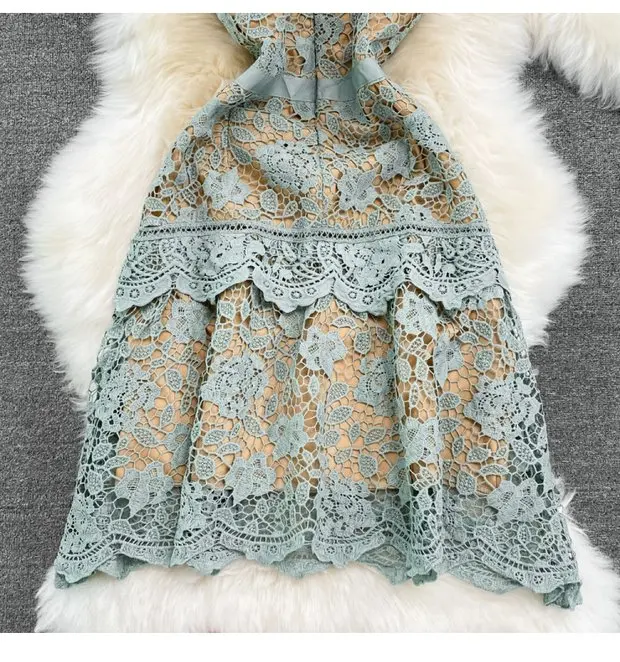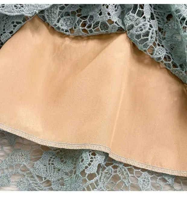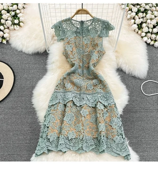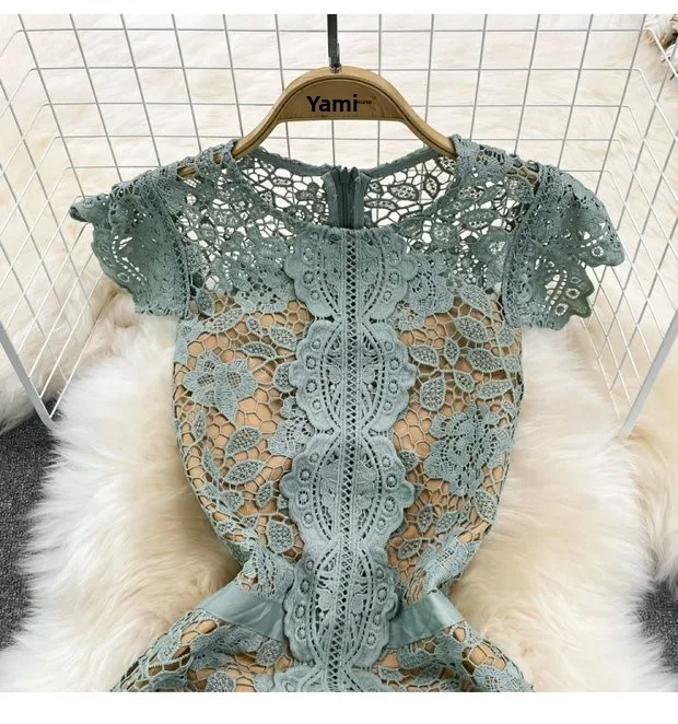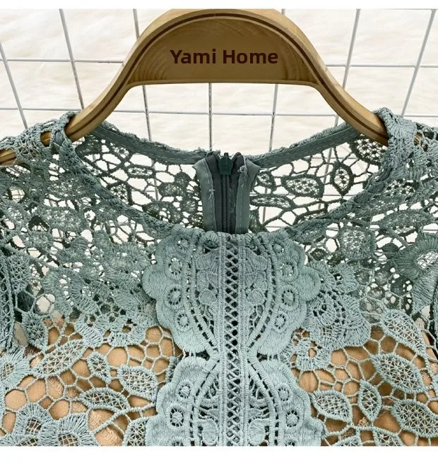 The dress is adorned with soluble hook flower embroidery, adding a touch of femininity and sophistication to your look.