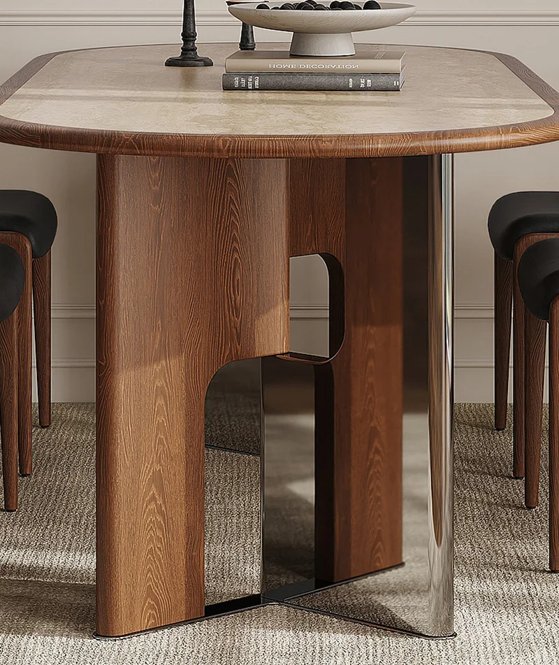 Table Material: Rock board surface + solid wood and stainless steel legs