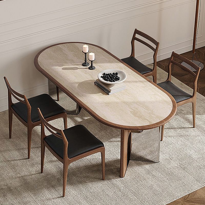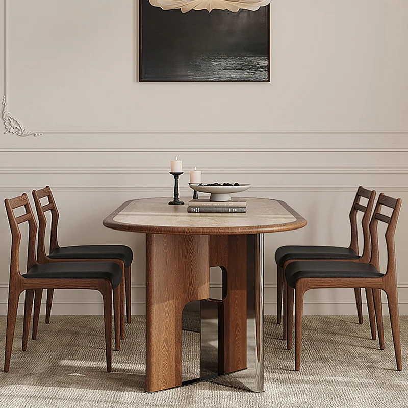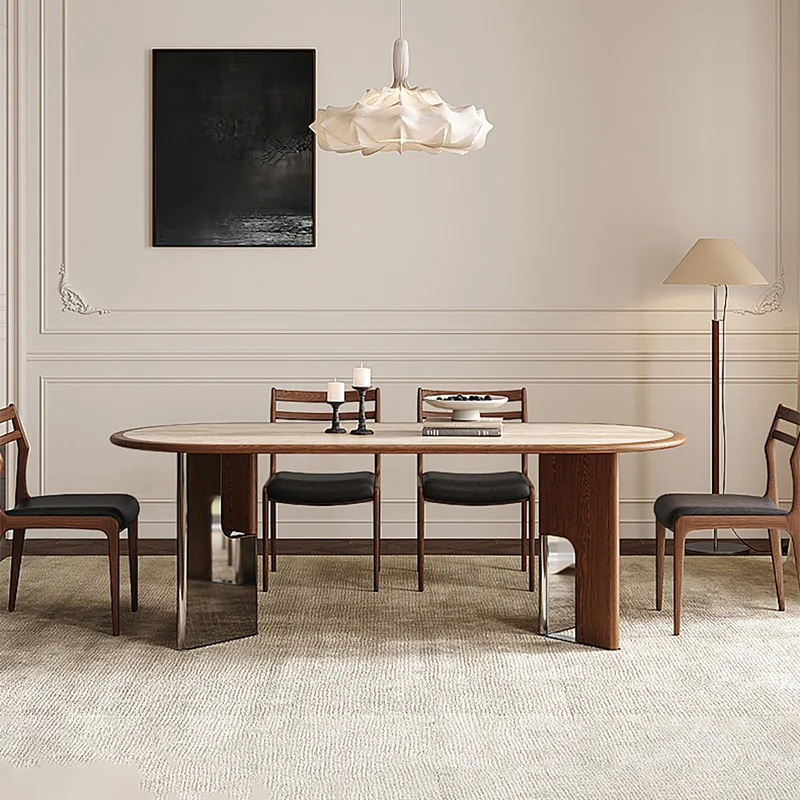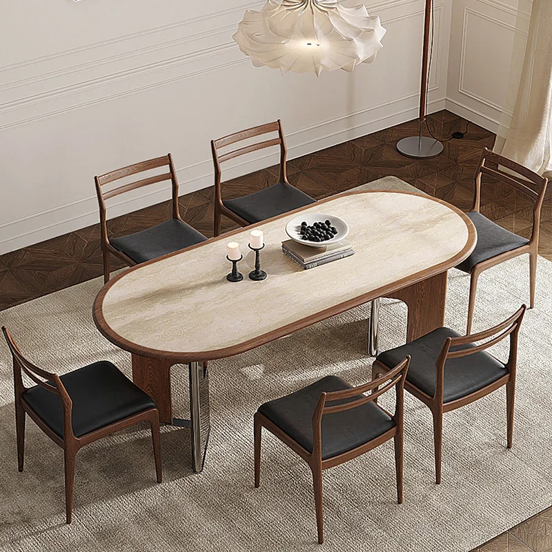 Retro Elegant Oval Dining Tables with Sturdy V-shaped Legs Modern Kitchen Dining Room Table Set Luxury Home Restaurant Table Chair