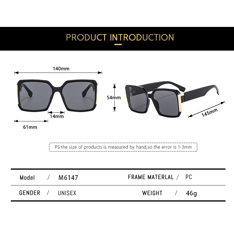 Retro Fashion Outdoor Box Luxury Sunglasses Black Frame Gray Piece