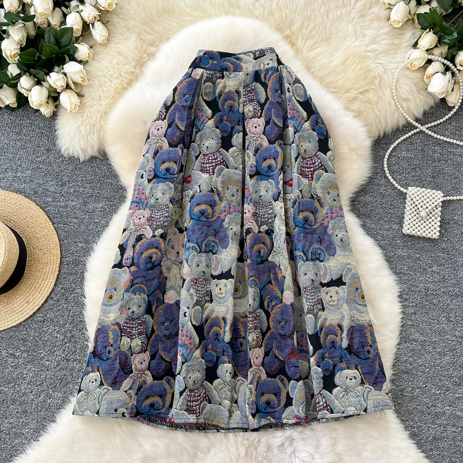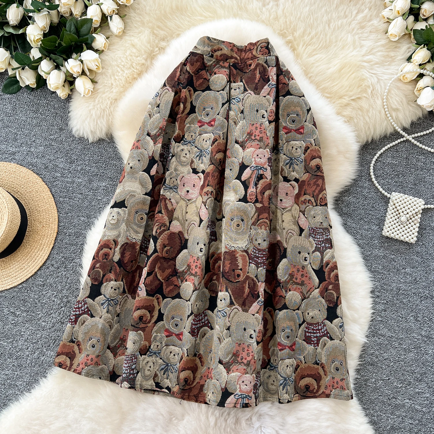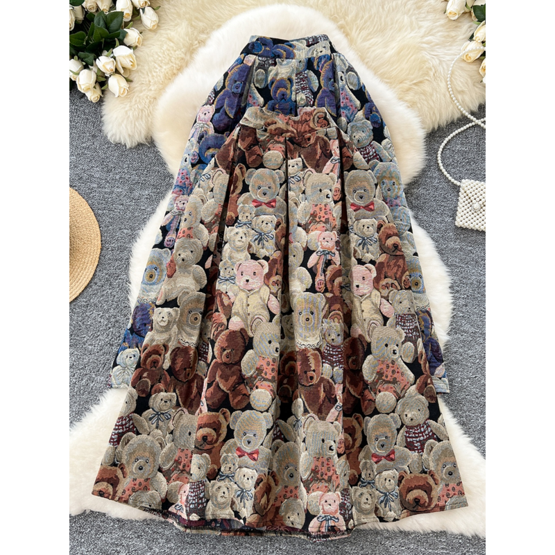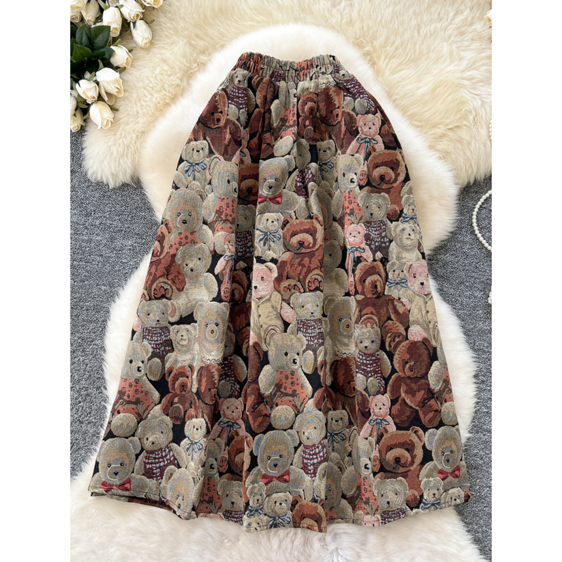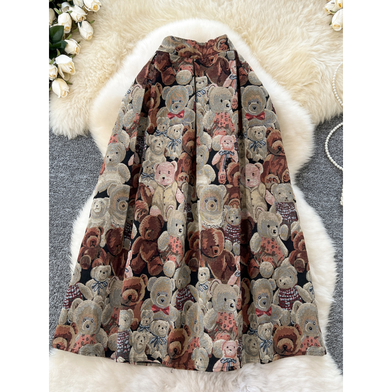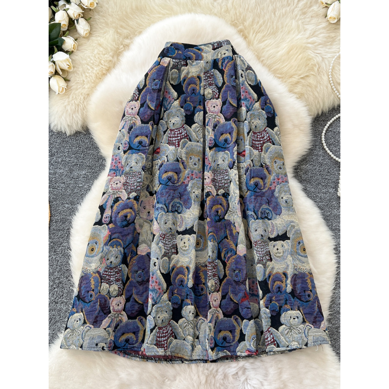 Featuring a retro heavyweight bear embroidery, this skirt adds a touch of vintage charm to your winter wardrobe.