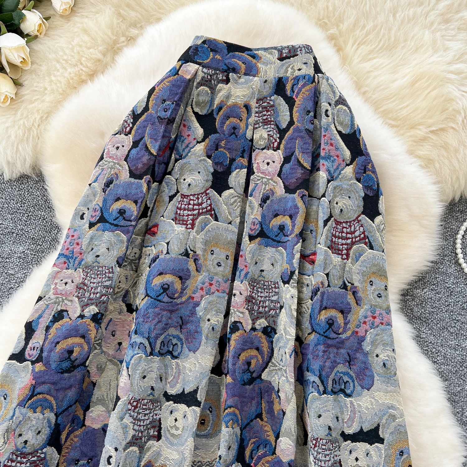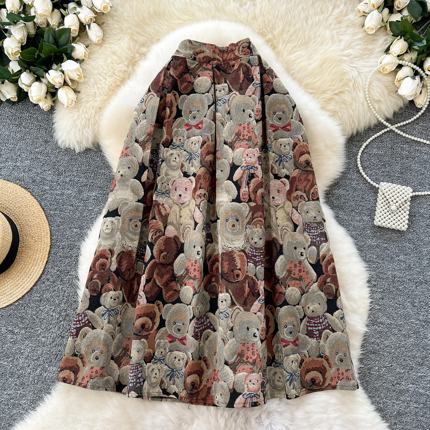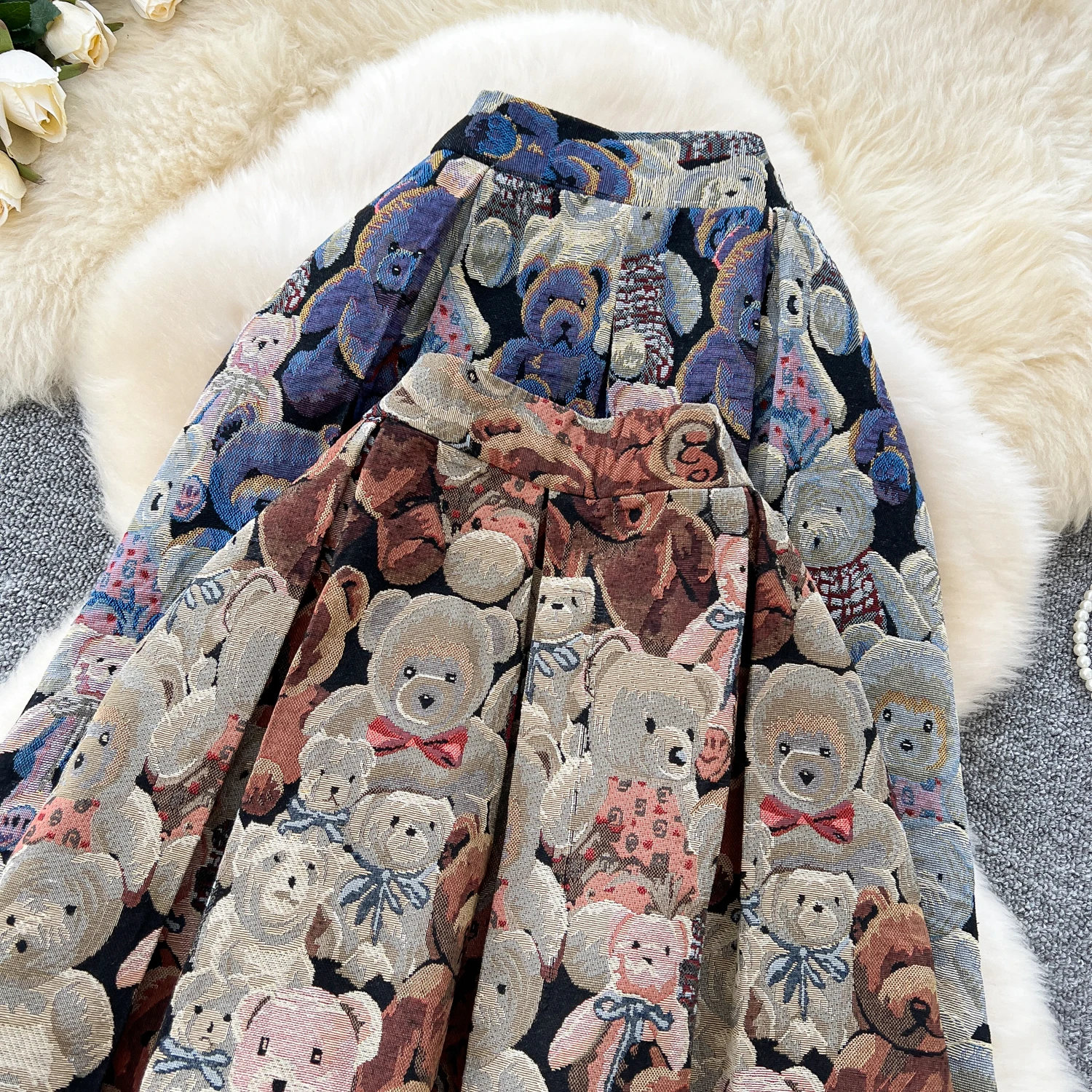 Featuring a retro heavyweight bear embroidery, this skirt adds a touch of vintage charm to your winter wardrobe.