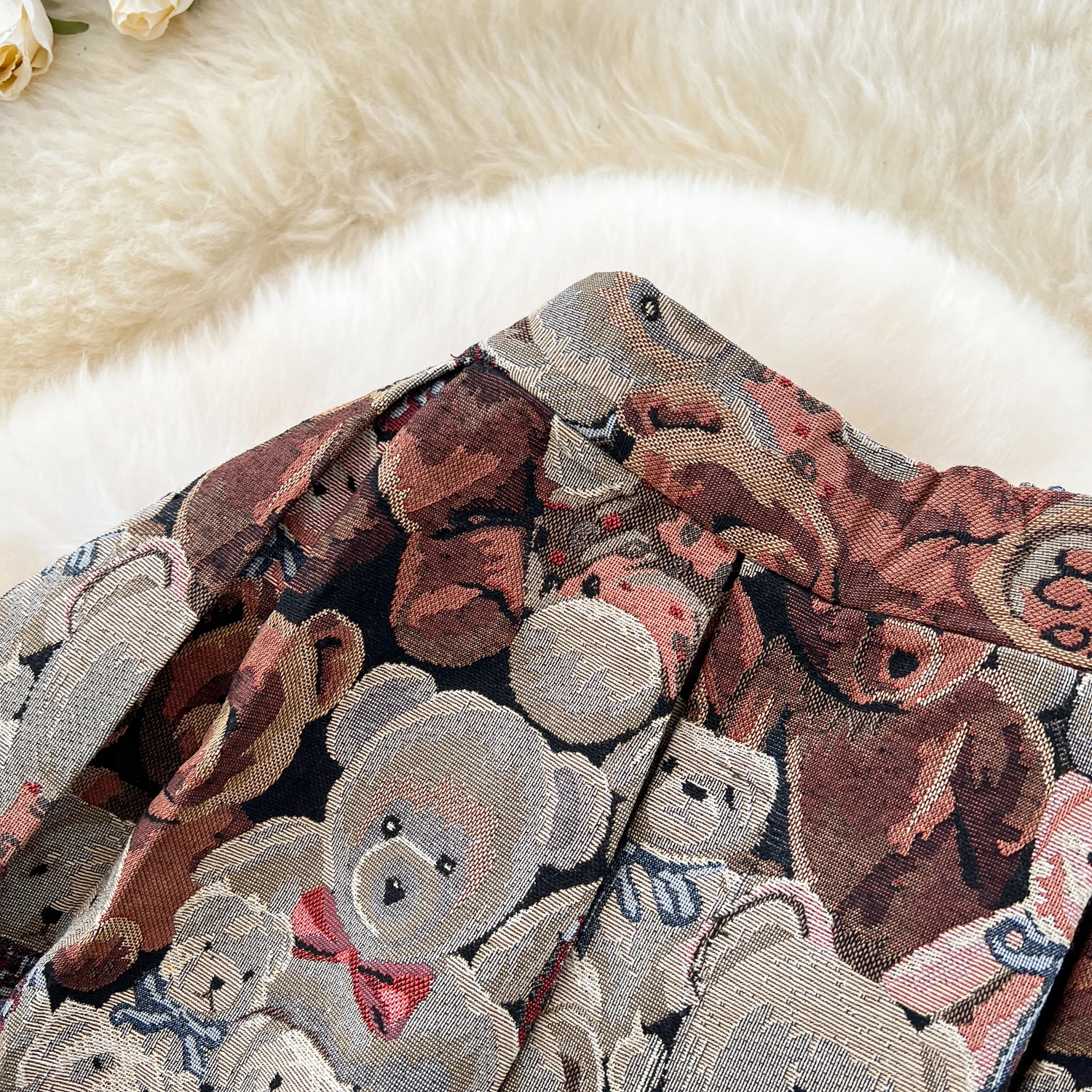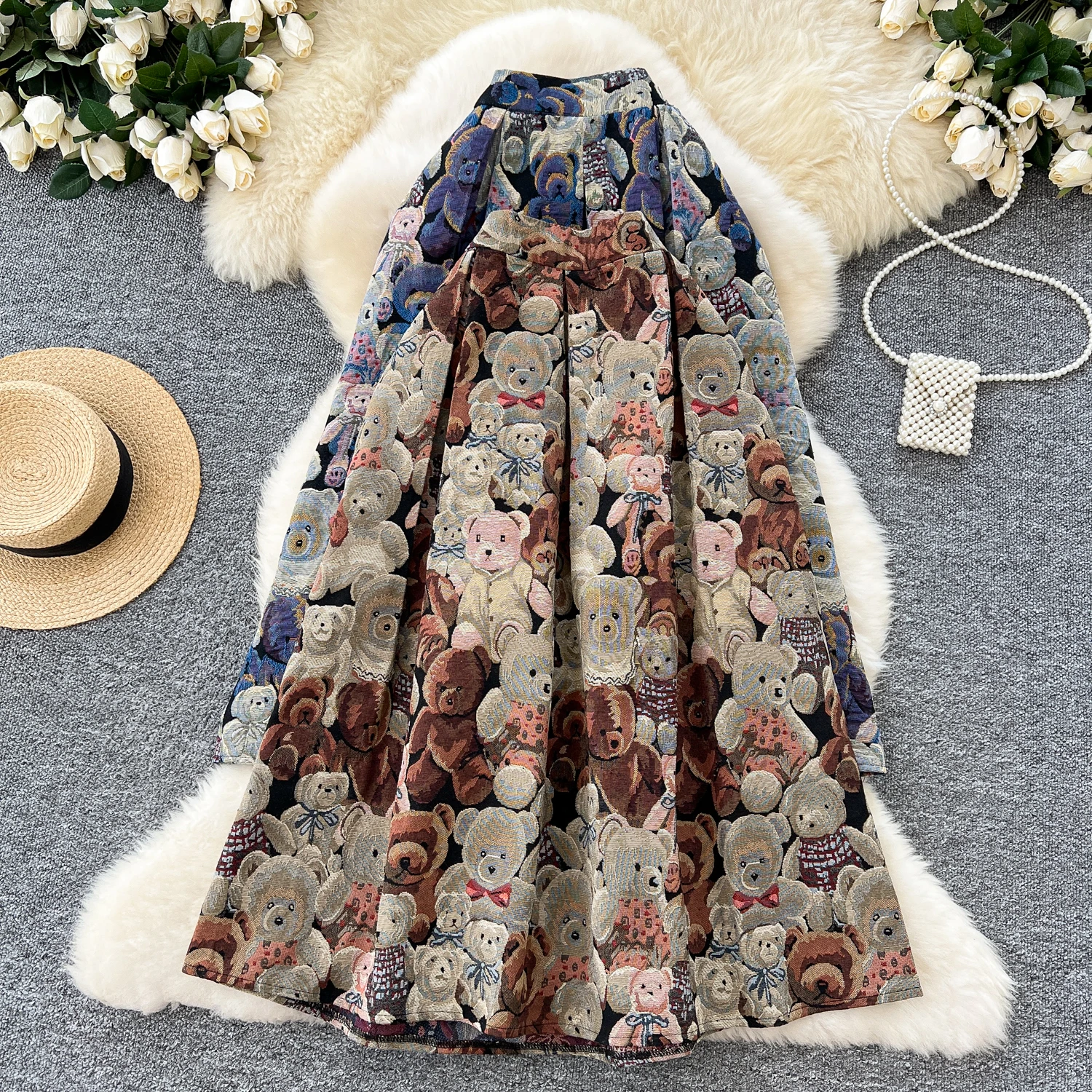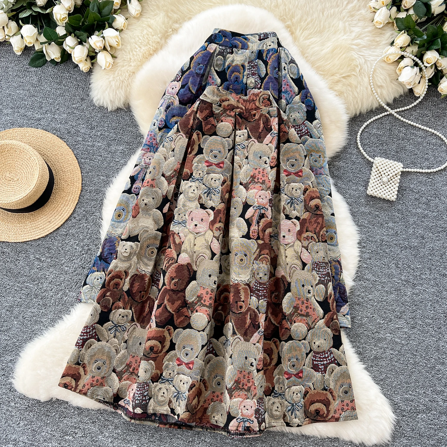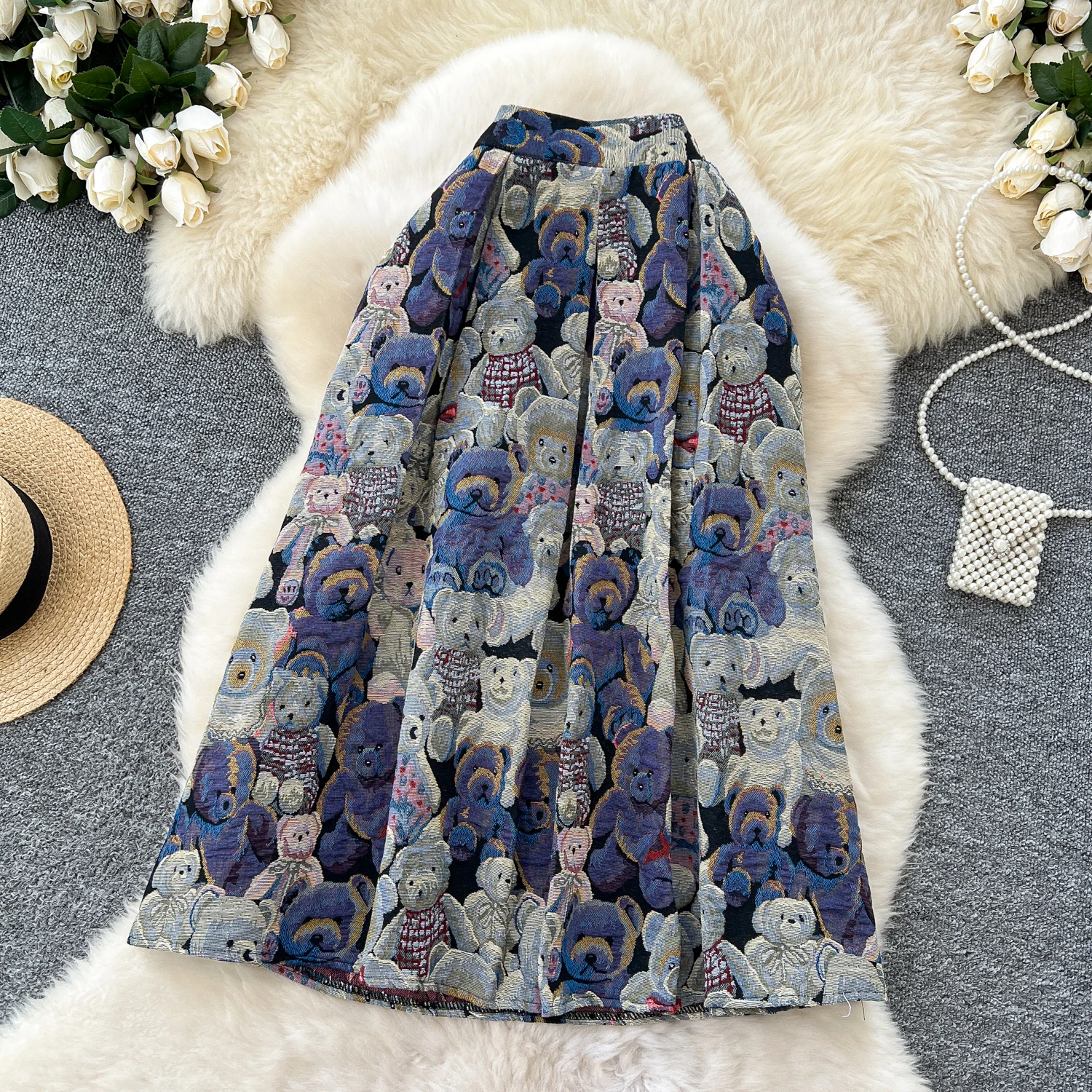Featuring a retro heavyweight bear embroidery, this skirt adds a touch of vintage charm to your winter wardrobe.