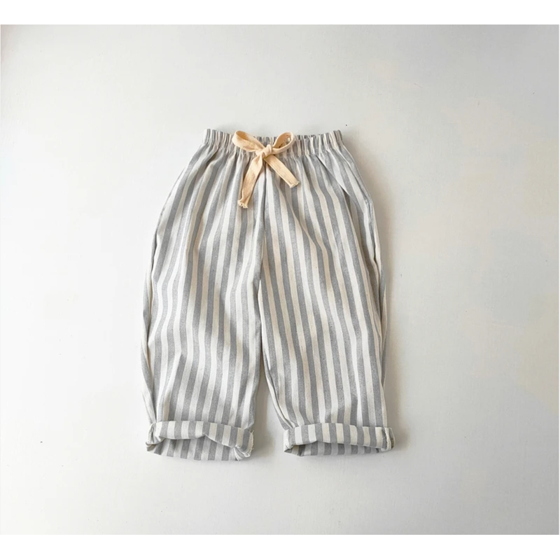 Retro Hemp Cotton Striped Boys' Pants with A Casual and High-end Design Elastic Waist Girls' Clothing Children's Pants
