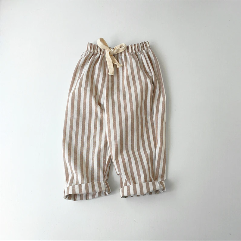 Retro Hemp Cotton Striped Boys' Pants with A Casual and High-end Design Elastic Waist Girls' Clothing Children's Pants