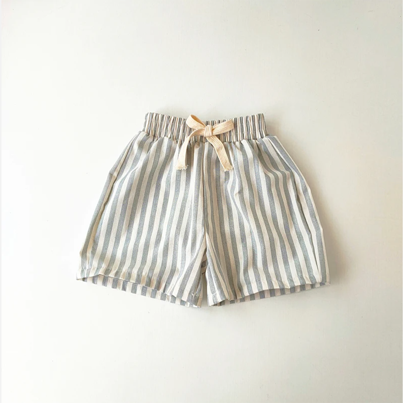 Retro Hemp Cotton Striped Boys' Pants with A Casual and High-end Design Elastic Waist Girls' Clothing Children's Pants