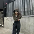 Retro High Street Hooded Camouflage Jacket Female Retro American Loose Plus Velvet Couple Zipper Jacket Y2K Sports Jacket